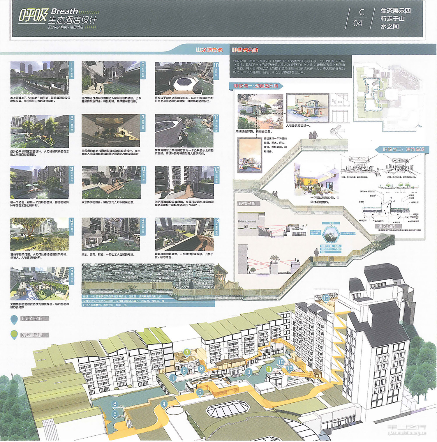 该方案的设计主题为"BREATH(呼吸)"。呼吸是人的一项最基本的生理活动,它无时无刻的在进行着。但是,随着社会的快速发展,一系列的环境问题导致人们很难呼吸到纯净的空气。当生活与自然渐行渐远,生存在钢筋水泥中的人们渐渐意识到自然回归的重要性,同时对居住环境的要求也慢慢的倾向于自然化与生态化。在此背景下,本方案依托西安建国饭店这样一个生态酒店的雏形,拟探究一个北方的并且能够让人"深呼吸的"生态酒店。