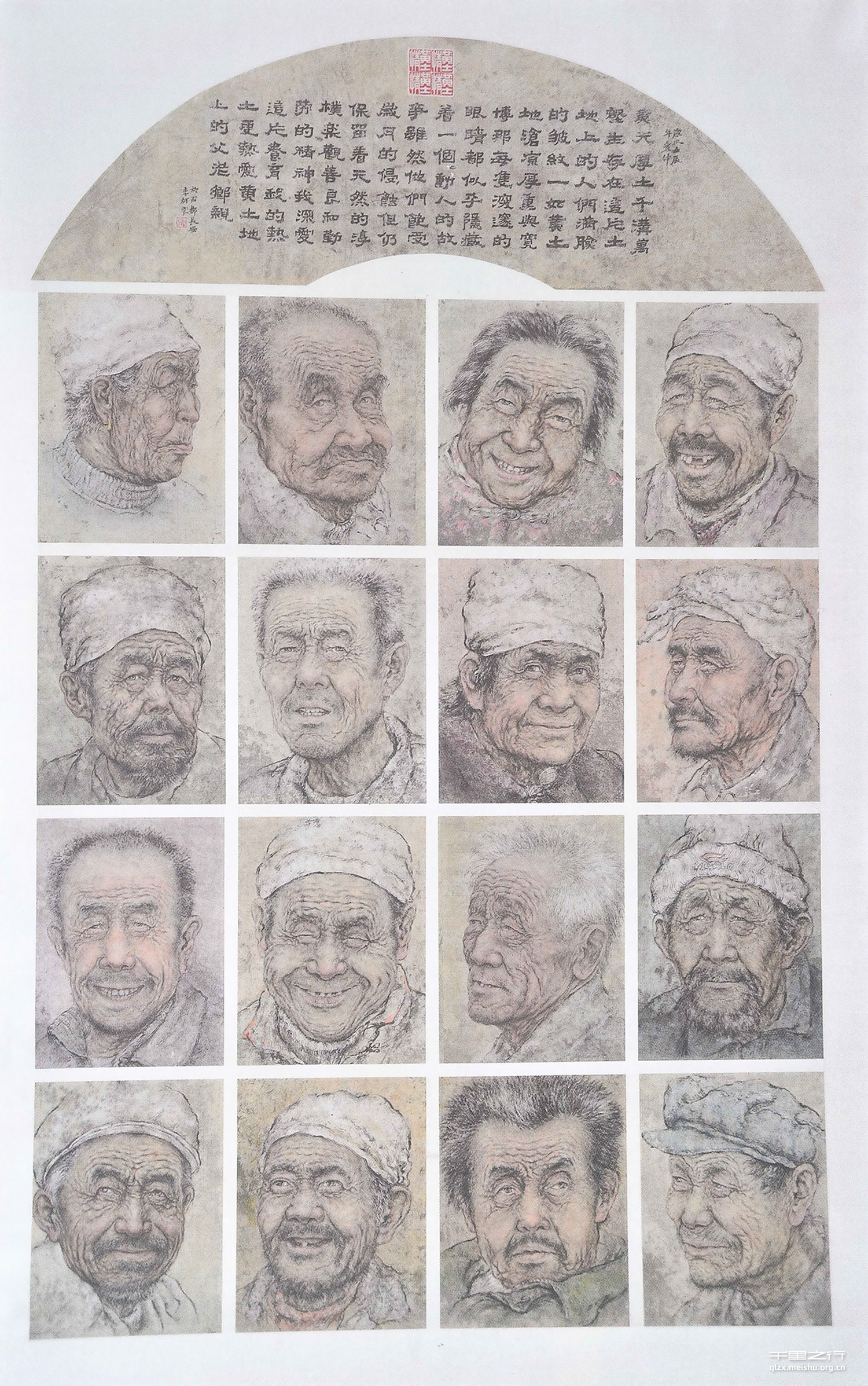 黄天厚土,千沟万壑。生存在这片土地上的人们,满脸的皱纹一如黄土地貌,每双深邃的眼睛都似乎隐藏着一个个动人的故事。虽然他们饱受岁月的侵蚀,但仍保留着天然的淳朴、乐观、善良和勤劳的精神。作为陕北人的后人,我深受鼓舞,并以绘画的方式将这种精神记录与发扬。整理确定以陕北老人为素材,找出最具有代表性,最有特点的人物形象。老年人受人尊敬和爱戴,在他们的脸上看到的都是人生的留痕,自然而然没有矫饰。有的沧桑的笑容中带有孩子的纯真,有的忧郁的表情中带有一丝微笑……岁月的痕迹布满脸颊,虽然年迈却还是那样成年累月、起早摸黑地劳动,我被深深地感动并尊敬他们。