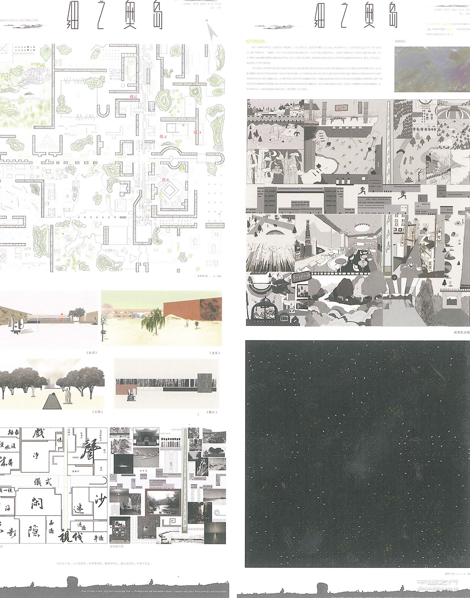 城市是集体的人造物--十字结构承载着人们的世俗集体生活。城市是艺术品--平面上看,大自然的底盘上,城市的墙宅像画框一样,框住了整个山水,里面内容和意义远远超出框内的东西。立面上来看,它有着三种观看山水的不同方式。一是看山是山,看水是水。二是看山不是山,看水不是水。三是看山还是山,看水还是水。