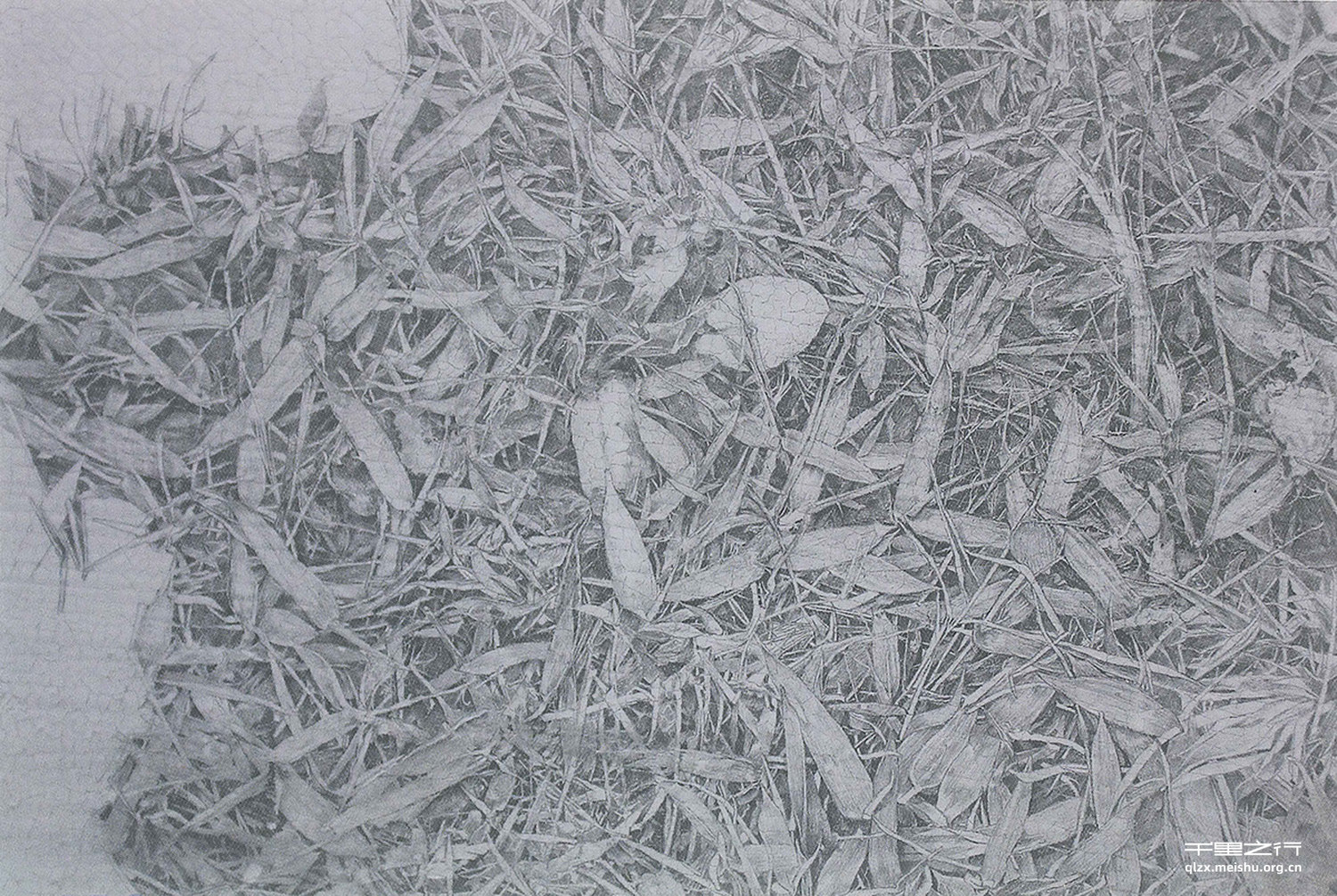 《草》是一件粉底素描作品,选择地题材就是自然界司空见惯的草,采用最为朴素的写实技法刻画,以呈现它最为自然的美。而整个过程就是静静做事,静静画画的一种状态,状态是画面美的一种体现。因为选择的材料为粉粒,在画面最终完成后又会在时间自然地作用下消失,这一过程就是我认为的我的作品的第二种状态美的存在。