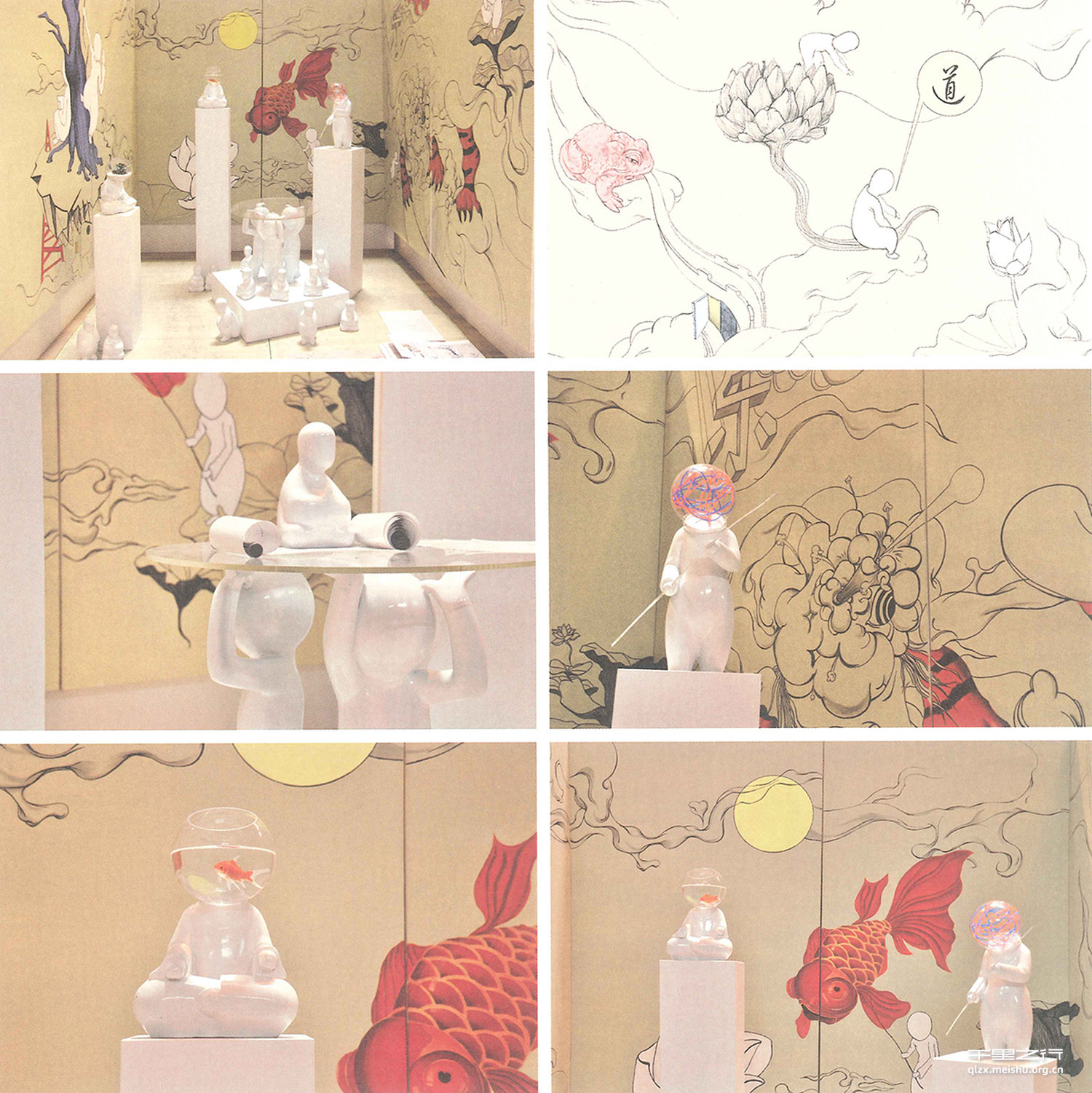 作品最终展示以雕塑成品若干以及大幅绘画为主加以插画卷轴 画册等共同组成,总共十余个段落,其中梦童的形象虽然反复出现却没有重复的形态。
