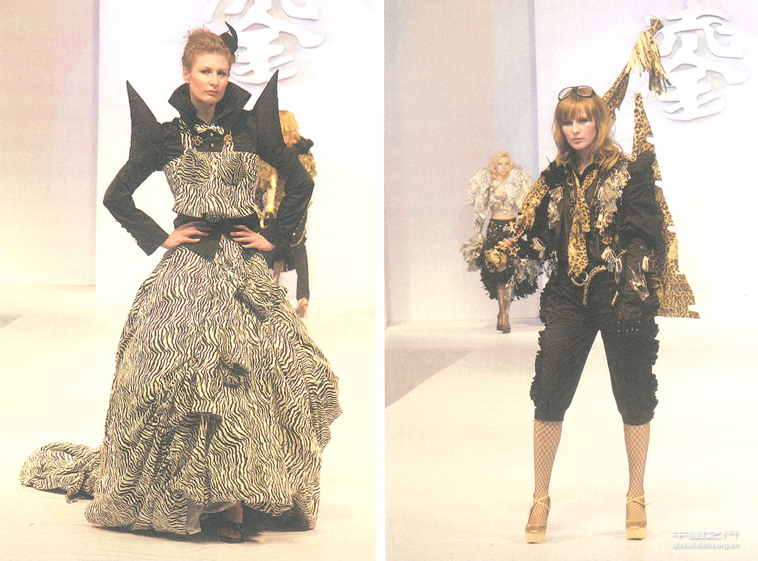 作品灵感深受巴洛克时期的建筑服饰影响,作品少了些少女的柔 美,多了些女性的阳刚。豹纹的棉质面料加入建筑风格的造型设计,搭配金属质感的别针作为装饰,带有一点点的朋克意味,整体服装造型设计体现大胆、性感、狂野,强烈的视觉冲击力。