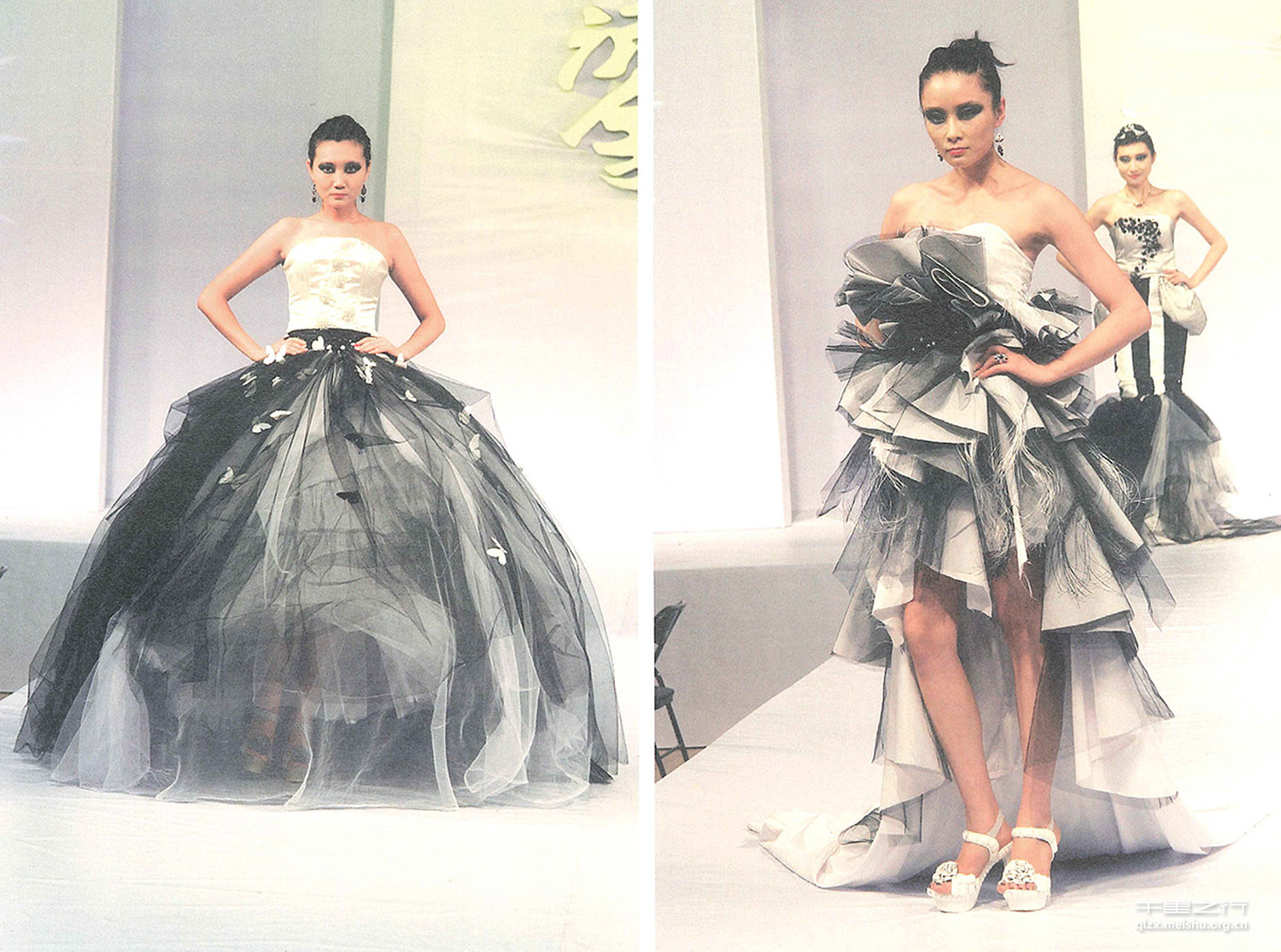 作品采用大量的丝绸、硬纱、水钻等材质,运用面料再造堆积的 方式设计的晚礼服,加入水钻、珠宝等装饰作为镶嵌,款式时尚,装饰细节精细,色彩以黑、白、灰为主,明快鲜明,整体服装设计造型充分体现女性华丽、妩媚、高贵。