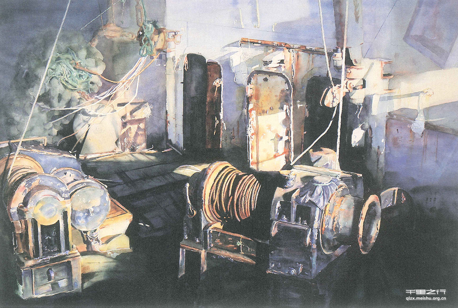 早上一缕阳光映照在渔船的发动机上,特殊的光影深深地打动了我,这美妙的一 刻使我为之着迷。船上的一小部分处在光线的照射下,大面积的阴影衬出了受光的机器,使画面产生一种强烈的黑白对比和视觉冲击力。