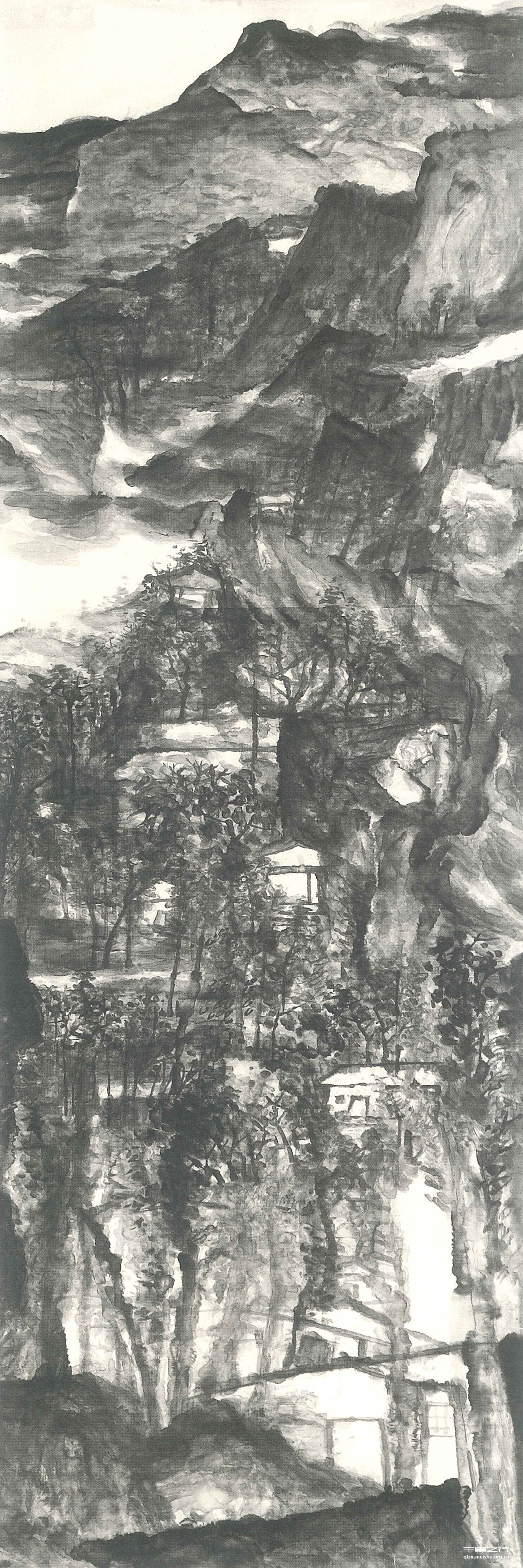 以传统中国画材料及表现形式一纸本水墨,以构成观念重新 整合传统笔墨结构,以黑白灰转化为原理,并附于现代笔墨技法。使画面达到一种新颖的视觉效果。此方法可笼统的称为:传统笔墨形式的当代重构。