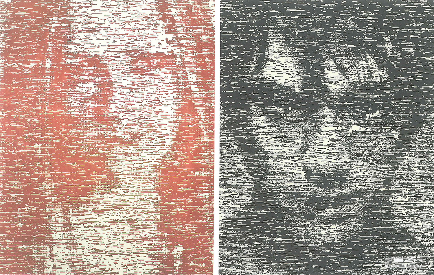 以两位名人的偶像形象为基础,创作出特殊的木刻人像影像。 这种影像给观众带来特殊视觉冲击。