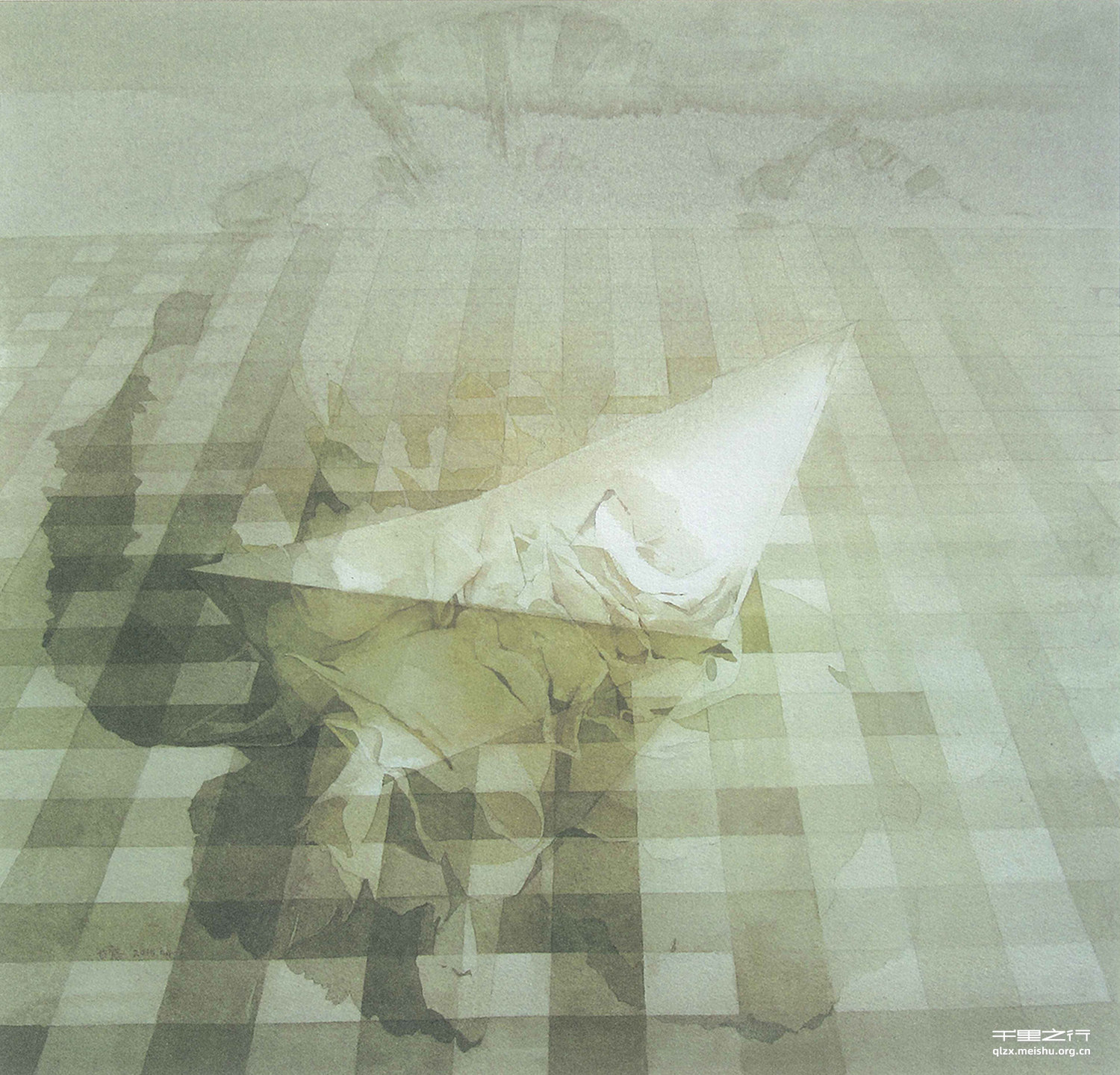 一只纸船寄托了对母亲的深深绵长的思恋,创作中借以纸船, 这一充满天真童心的物件表达我诚挚的心愿。画面底部衬以绽放开的康乃馨,纸船与康乃馨的交错隐现,浓重真挚无法言说的感情正是我那刻的心境。愿这只纸船能寄出我对她的爱。