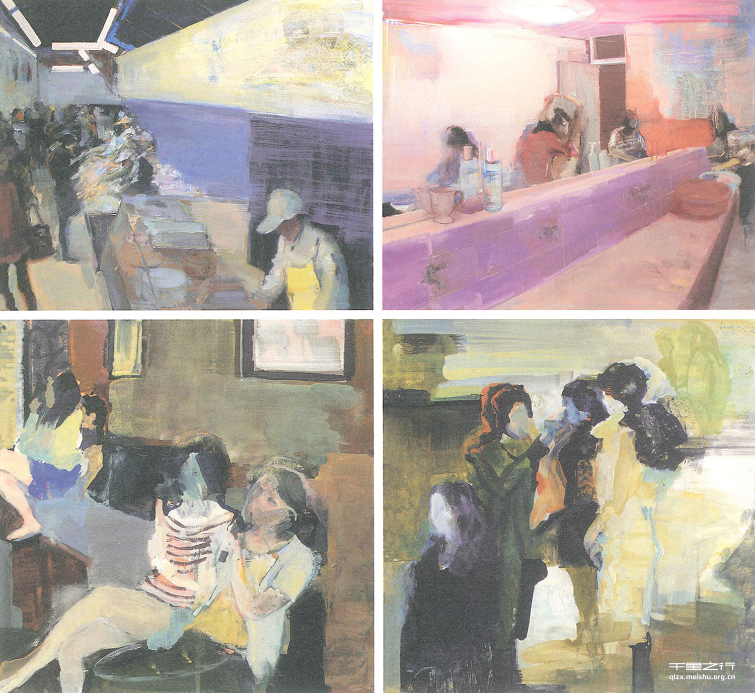 作品以一个个场景的形式呈现,让人似曾相识却又有些陌生,有 些地方有十分明确的形象,而有的地方只是一团若有若无的外形,这正是如同记忆一样,有的深刻,刻骨铭心,有的像浮云,模模煳煳。记忆不清楚的地方就显得空白,记得的地方就仔细去描绘,造成对比。这些都是“忆”而不是“梦”,我所忆的是我生活中发生过的事情,我的视觉经验。它们体现了我生活中关注的人、事和物,留在我脑海里的宝贵经验以及我对当下生活的情绪态度和希望。