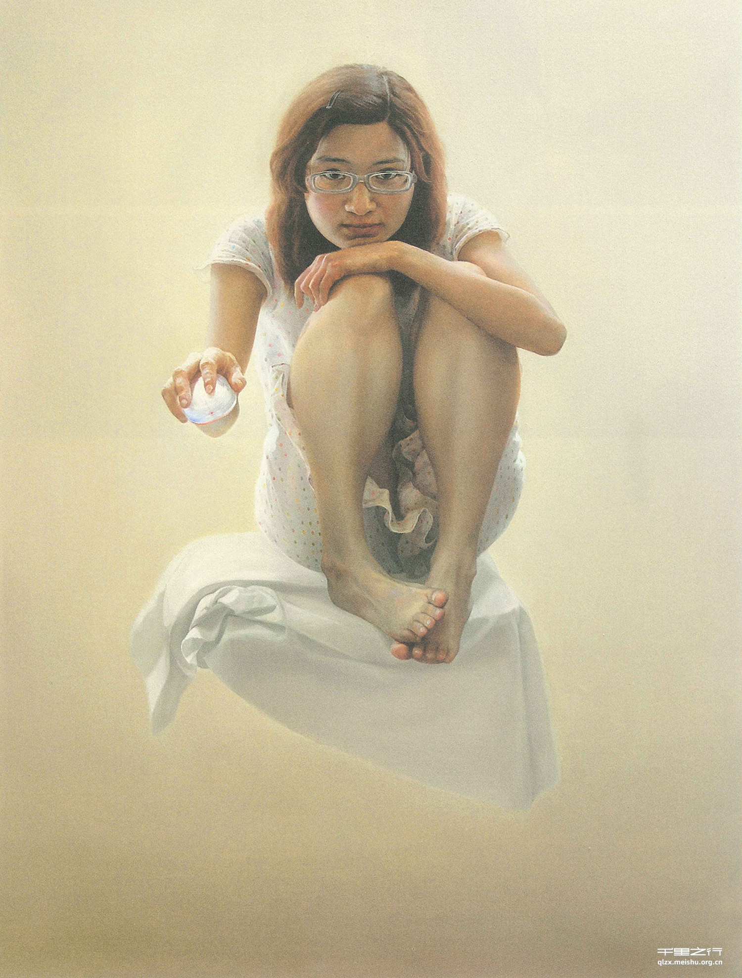 这幅肖像创作的对象是我的好友,一个典型的上班族,每天面对 最多的是电脑,在电脑里工作、休息和娱乐。这种状态,事实上是这个时代的特性。让我感兴趣的是,人们在电脑中似乎找到了安全感,而这种安全感在如今的人与人之间已经越发的缺乏,不知究竟是因为电脑的产生使现实中的人与人之间产生了隔膜,还是因为人们本身就缺乏安全感和信任,从而导致了电脑时代的产生。总之,我试图在作品中表现当她处在网络世界中时所流露出的一种欣慰感。