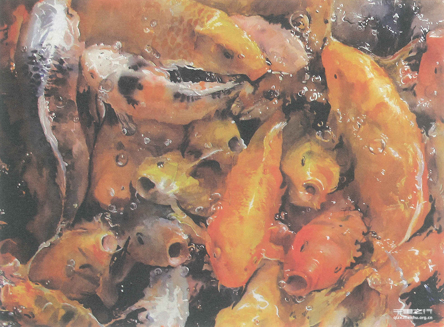 T m hungry,I’ m hungry”画中的每条鱼都在内心撕心裂 肺的唿喊,灵动的水泡激荡着她们心中的不平,张大嘴巴拼尽力气争夺那能探出头抢夺美食的宝地,好不快活,好一场鼓舞“鱼”心的美食抢夺战啊,不禁摸一下自己的肚皮,好像也有