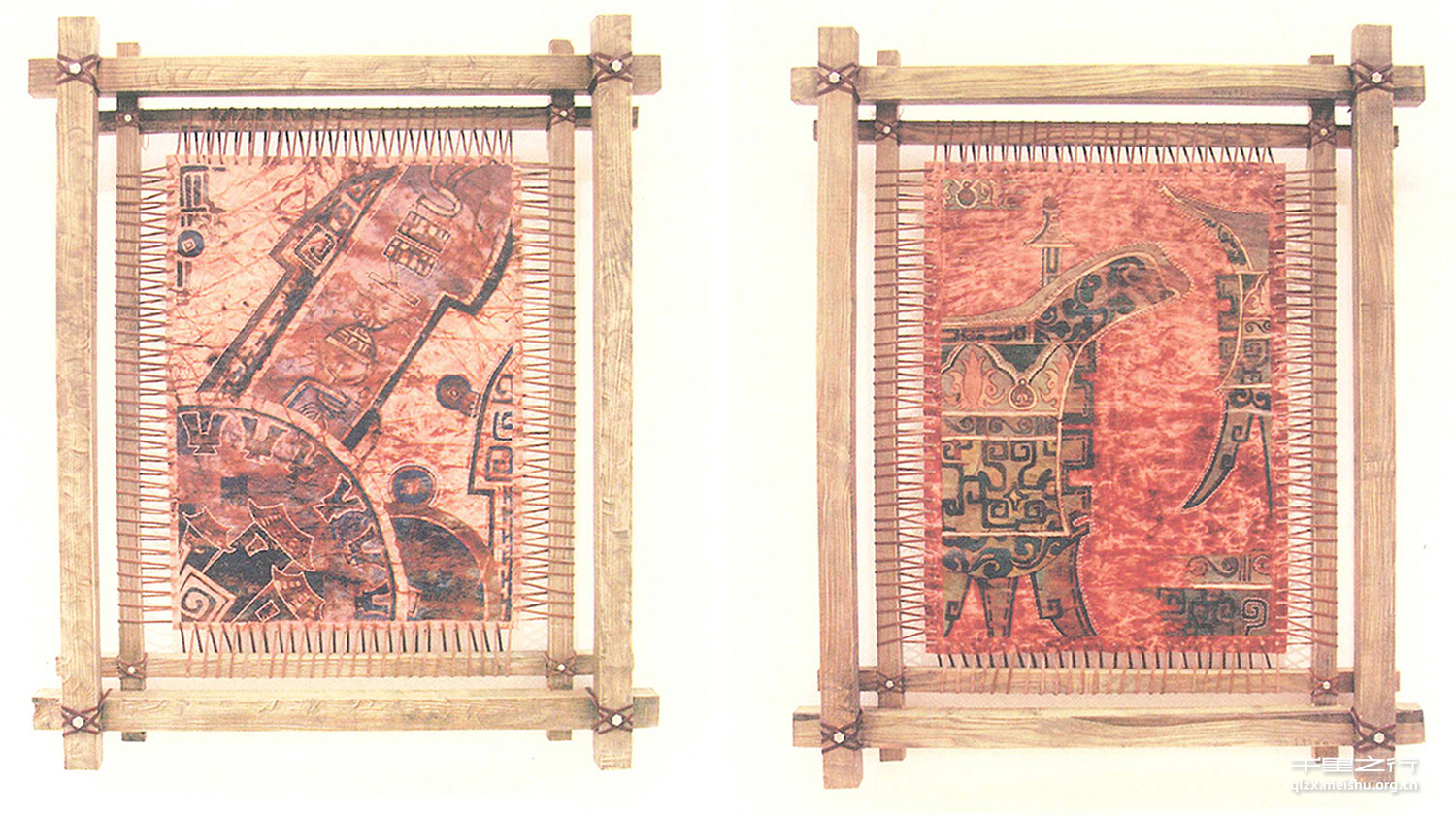 作品利用在皮子上绘制青铜器的图案,并运用蜡染方法予以加工。绘制的青铜器图案介于图案化与写实化之间,既有造型优美的形态,又有青铜器本身的质感和气势。而那远离我们的青铜器时代的夺目光辉一直为我们所向往和憧憬,希望通过本作品把这种距离感拉近,让我们共同回归青铜器时代。