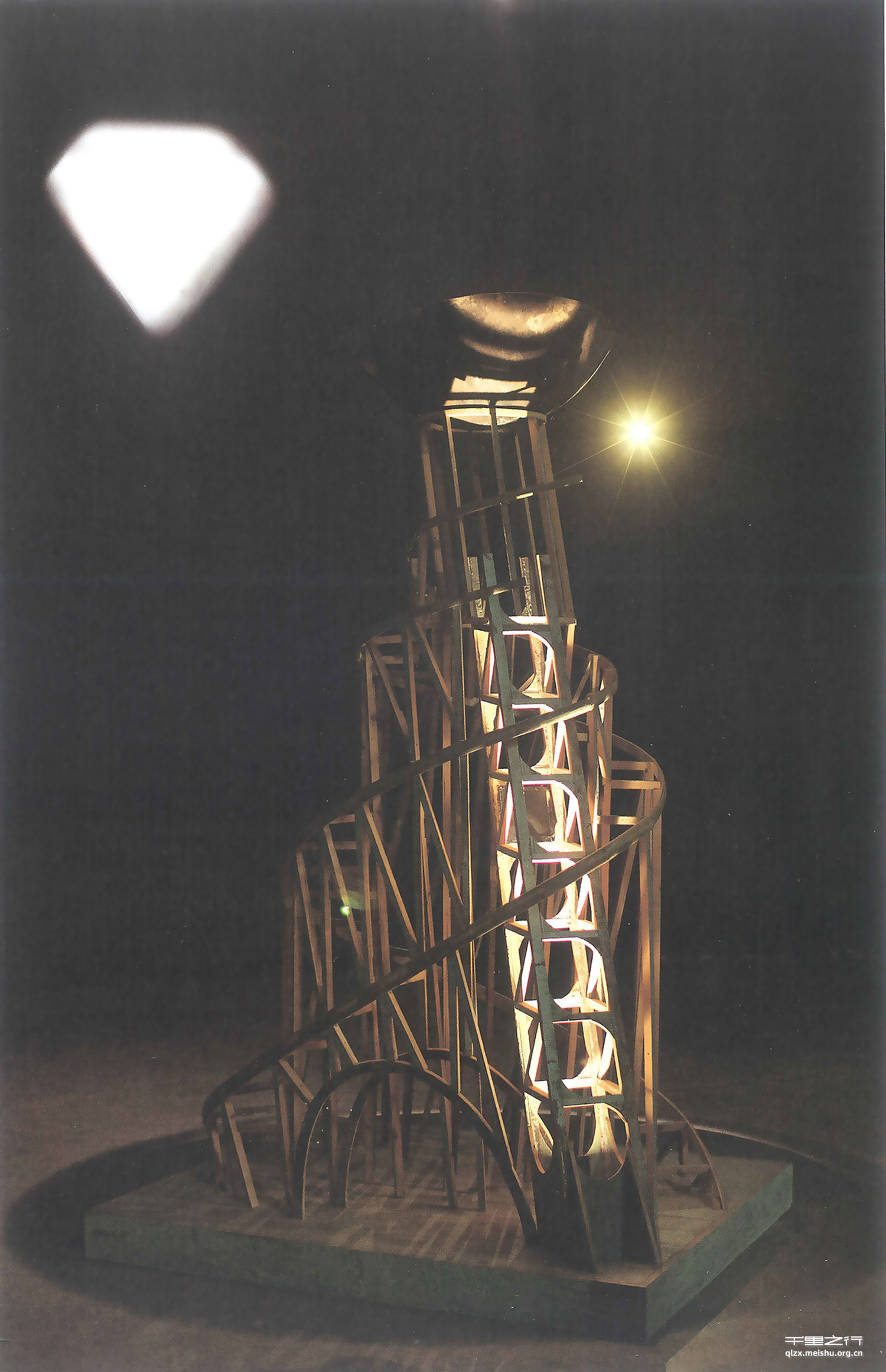 颜情同学的毕业创作《对话》,是一件优秀的装置作品。她运用拆迁工地收集到的破旧门窗材料,创造性地“山寨”了塔特林的第三国际纪念塔及其承载的思想与精神内涵。并从废墟中捡来衣柜镜子的碎片,折射出一个虚幻的钻石影像颜情的作品,从自身生活经验出发,/映照现实与梦想、历史与当下,准确地再现了年轻一代潜藏心底的焦虑与惶惑。