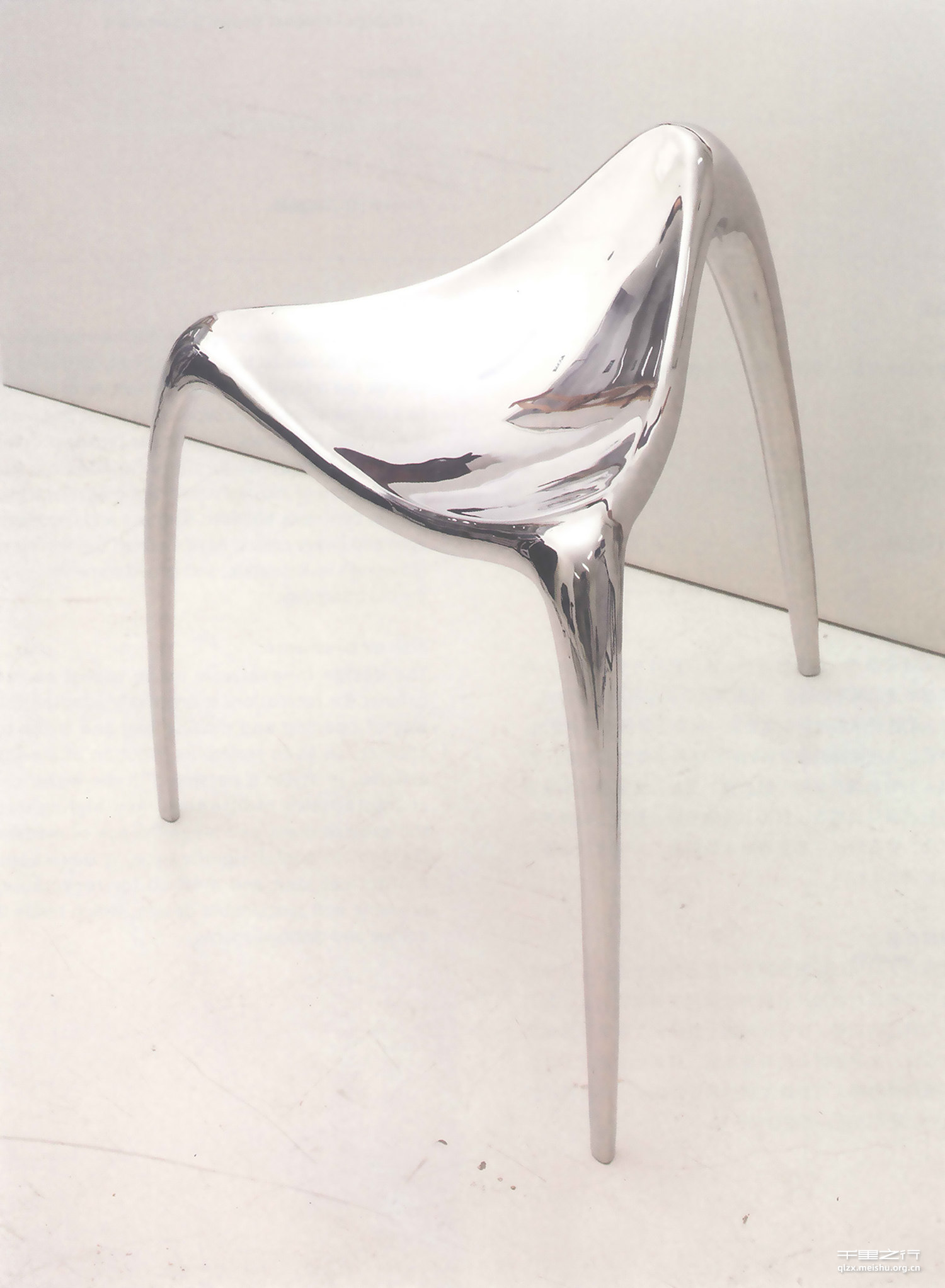 三条腿、一个斜弧面构成的一张椅子,无论是在材料运用还是造型上都尝试着打破传统,具有较强的实验性。