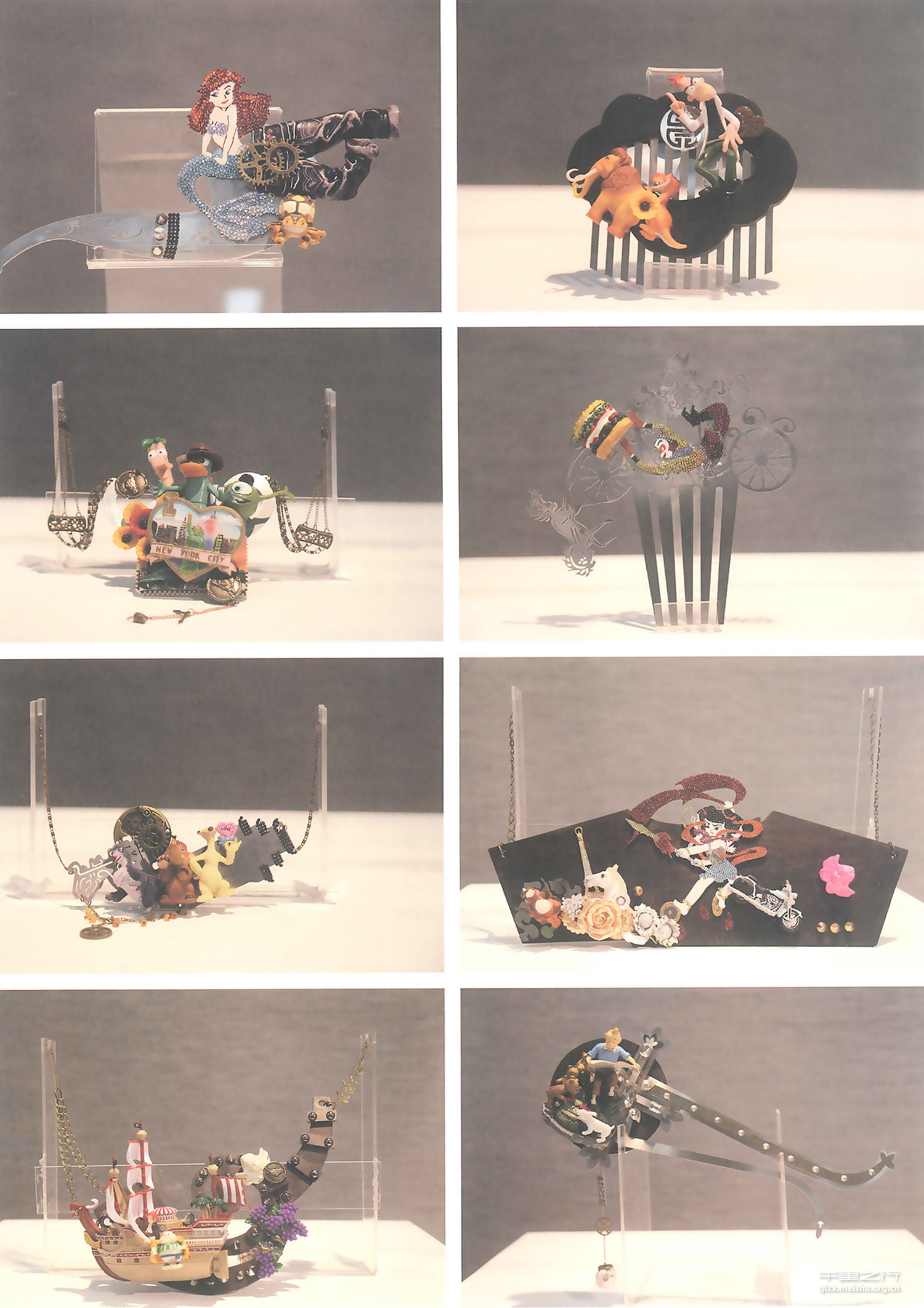 《混搭时代》采取了明显的波普艺术和拼贴艺术的构成方式,将各色不相干的零件随机拼装组合在一起,最终的作品也难以被归类,它既不是从功能出发的头饰设计,也不是以装饰为目的的形式主义,以时尚的方式来解释便是“混搭”或者“跨界”。这是近年来工艺系公共艺术工作室倡导“当代手工艺”学术方向的一个典型案例。从这件作品中我们不难看出,学生们开始追问艺术创新的观念与语言材料的关系,从单纯的形式追求过渡到观念和思维的创新表达。受到横向的其他艺术类别的影响,当代手工艺与艺术的边界趋于模煳,当代手工艺作品与纯艺术作品的语言形态呈现交叉融合的趋势。