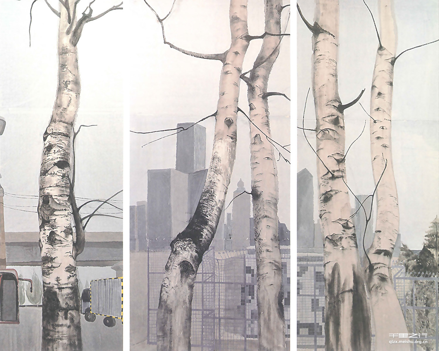 她的创作以当下城市场景、城市人为主题,好像一个冷眼旁观的心。超乎一般的表达视角,抽离的远近、大小,细腻地专注在植物与人的对抗中。还有横竖倾斜与正方的装饰下的理性与感性的碰撞,都显示了她语言表达的才能。不无观念的浓缩与装饰手段的运用,都遵循着精神的起落消解在情感中。她试图在画中调整着自己和别人的孤独,使美渗入在整体的和谐中。这就是创作者的成熟之处。