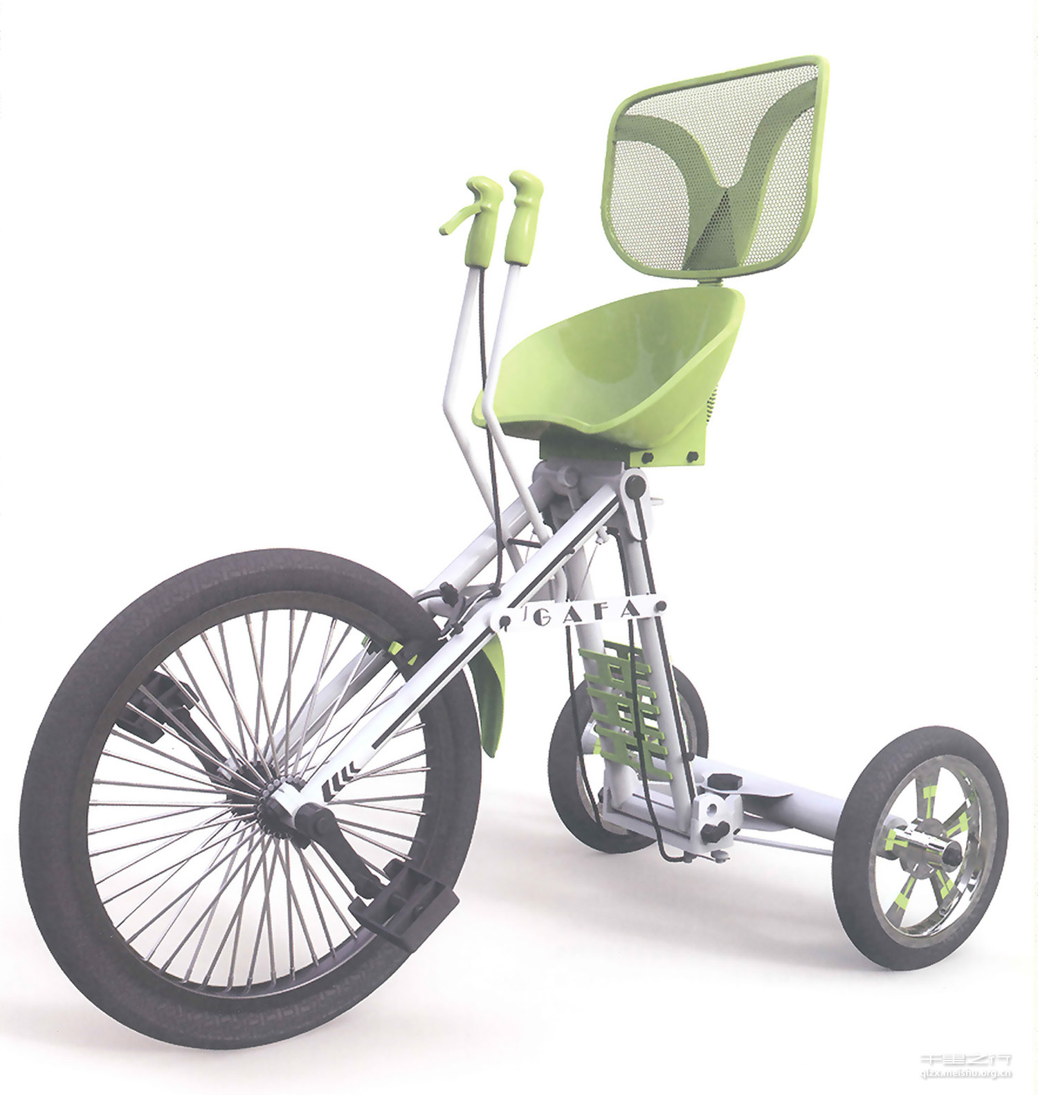健康的儿童娱乐方式是家长最大需求,户外儿童两用折叠车是根据这个需求所设计的产品。它采用独特结构改变传统三轮车的后轮驱动方式,为前轮驱动,方向由后轮掌控,目的是借此提高儿童的体验,培养儿童对不同运动产品的适应性。户外两用折叠车可通过调控前后座位距离和折叠角度可转换的支架实现坐、躺两种不同方式,兼顾两种操作方式的效率与舒适性。