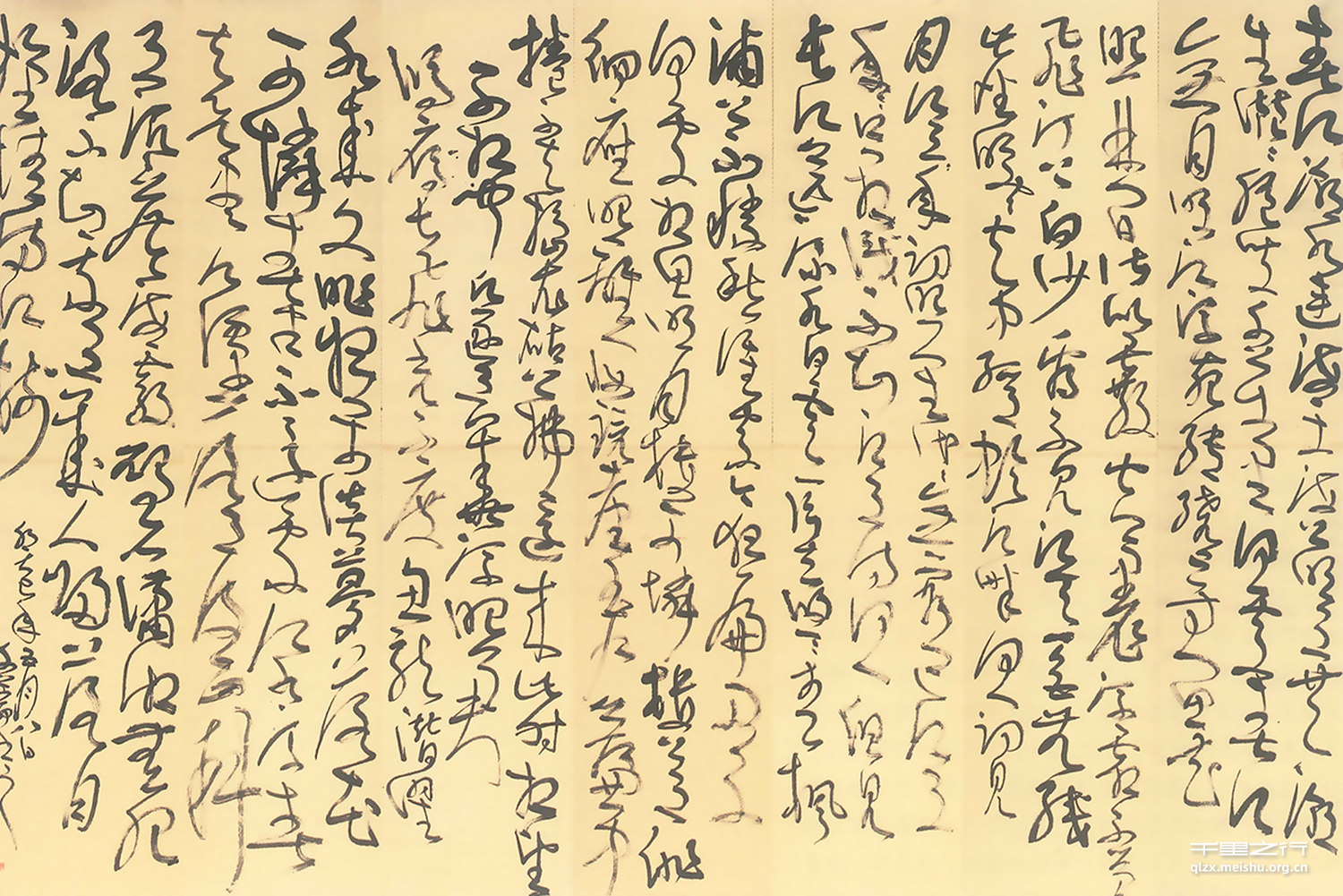 作品虽然形式感并不强烈,但多少了解我性格的人也许会明白我的心,它流露着我狂放不羁、天马行空、洒脱的气息,描绘着我理想中的天真烂漫、激情与率意。书论有云:“顾于物,见山水崖谷,鸟兽虫鱼,草木华实,曰月烈星,风雨水火,雷霆霹雳,歌舞战斗,天地万物之变,可喜可愕,不寓于他,必于草书焉发之。”此情此景之我所欲也!
