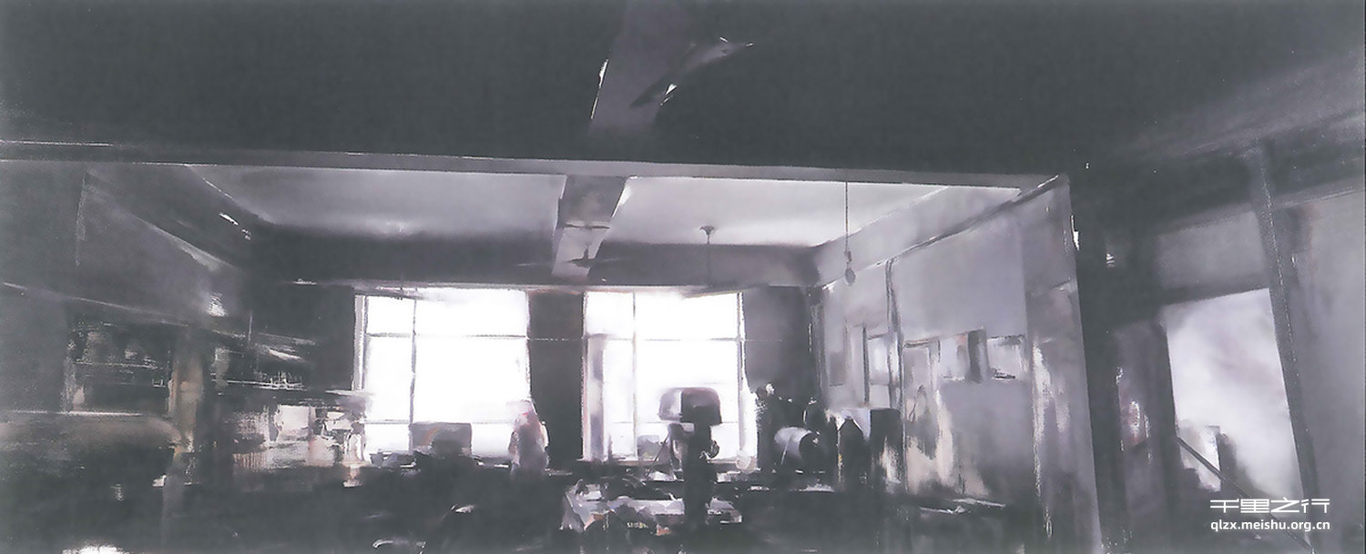 王婧旭似乎认为绘画并不能承载过多的思想内容。她近期的系列作品一直在对幽暗的空间环境的描绘过程中,探索形象和表现语言之间的平衡关系,在若隐若现中构成饶有趣味的画面,作品弥漫着忧郁的诗意。