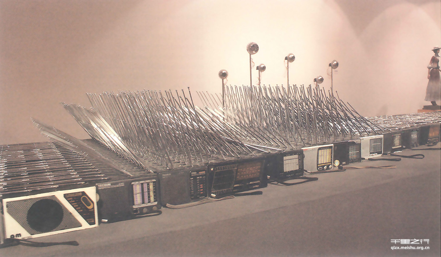 《对海的向往》由326台二手半导体收音机和1000支天线组成,用收音机调频白噪声的音量控制结合天线的运动轨迹模拟大海的声音和视觉形象。