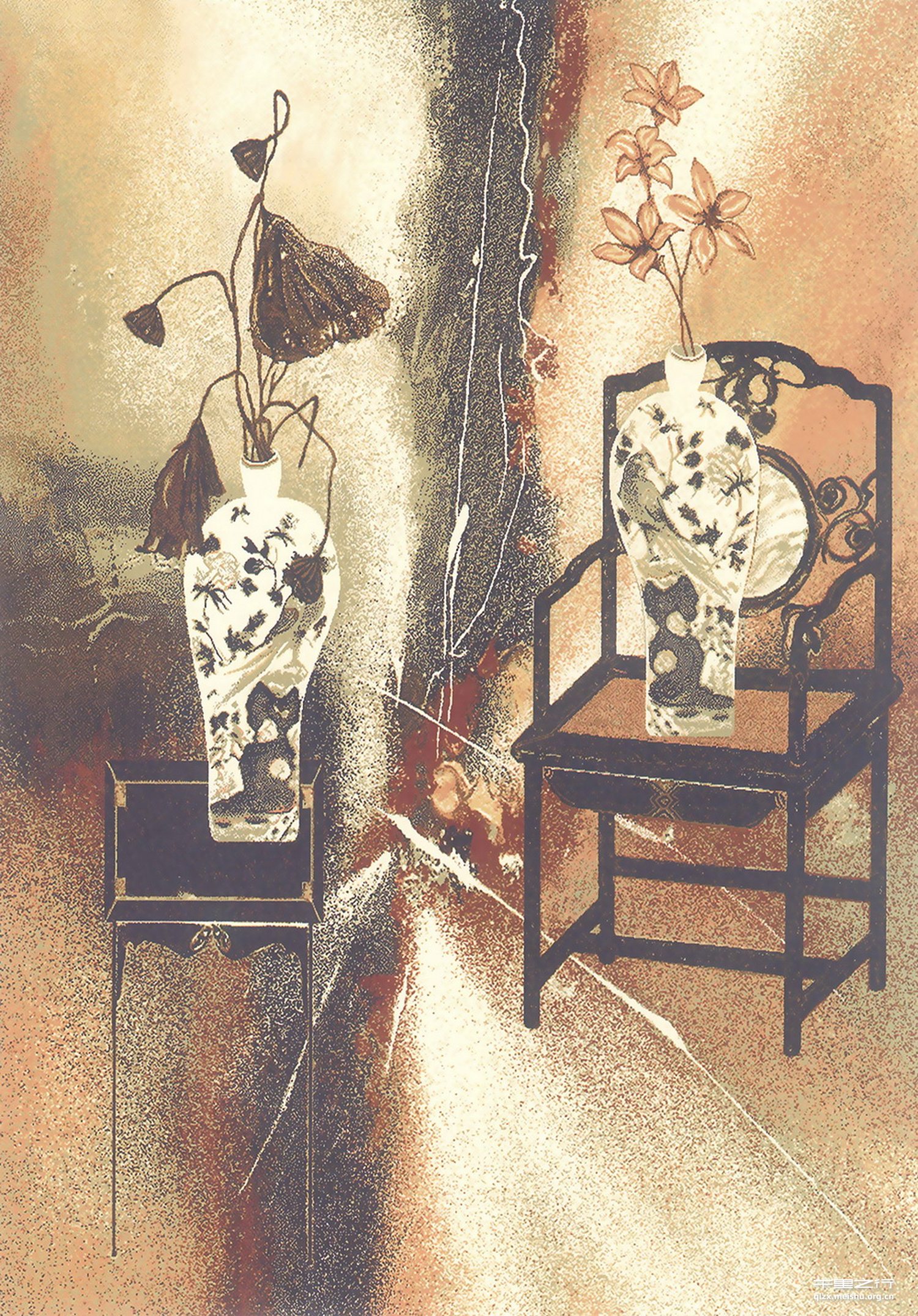 “檀木真国色,悠悠古韵浓。”此设计灵感来自中国传统的家具与瓷器,用现代艺术语言表达作者对历史与现代的思考。用丝织挂毯的艺术表现形式再现文化的传承,体现中华文化的悠然韵味与强大生命力,是传统文化和现代设计思想的一次完美对话。