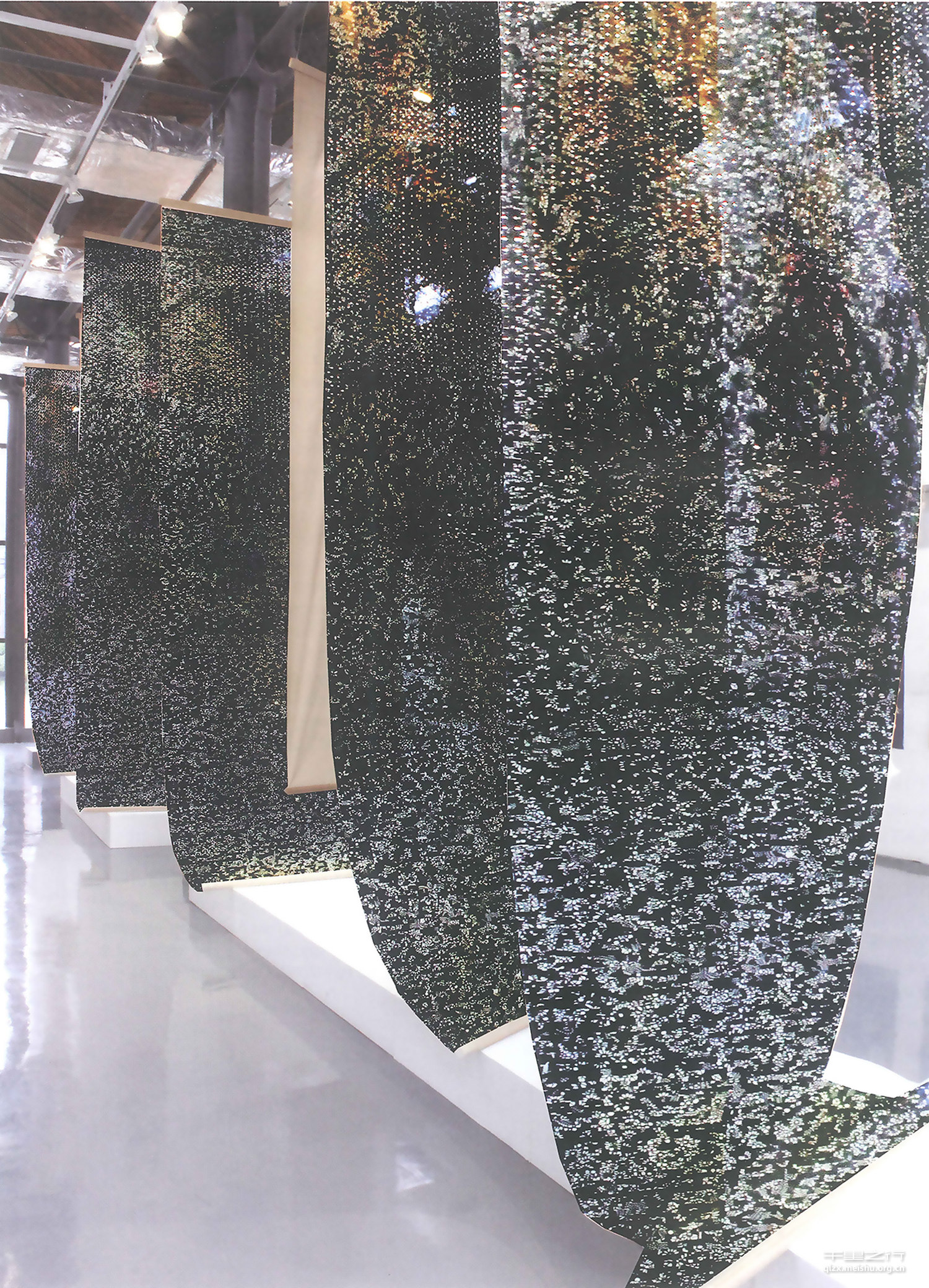 蓝印花布古朴、自然,具有朴实的艺术语言。运用蓝印花布采用经纬编织手法,塑造了官椅、对门等抽象形象,表现传统官道与市民生活的微妙关系。作品整体做工精良,气势宏大,意寓深刻,是比较成熟的纤维艺术作品。