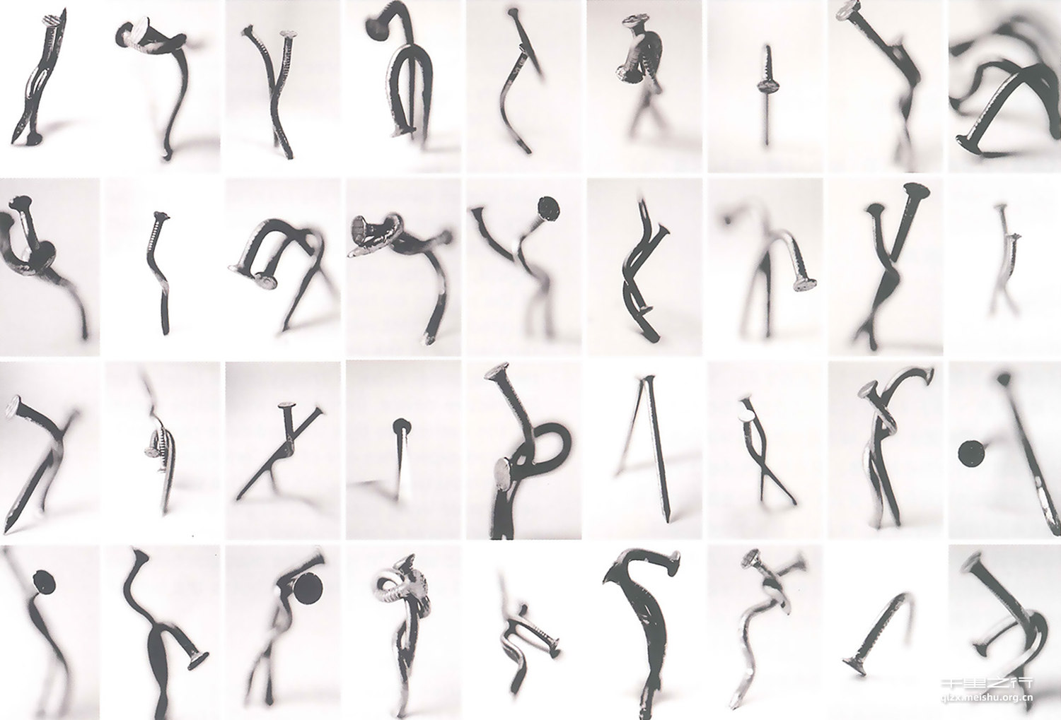 这些钉子的影像单纯地来自于我对肢体的感受和臆想,只是那些生长在我内心的画面。我时常会想象到交织、扭曲、旋转、生命、孤独甚至性与死亡的感受和抽象画面。虽然因为离得太近而模煳了彼此的面孔和身体,但我能深深地感受到周围是那么的充满了情绪。创作中,钉子线性的形态和金属的材质给了我很大的发挥空间,这些本没有生命的工业金属被我扭曲成为臆想中的形态,通过镜头反置和大光圈的虚焦,感性地呈现在我的底片上。