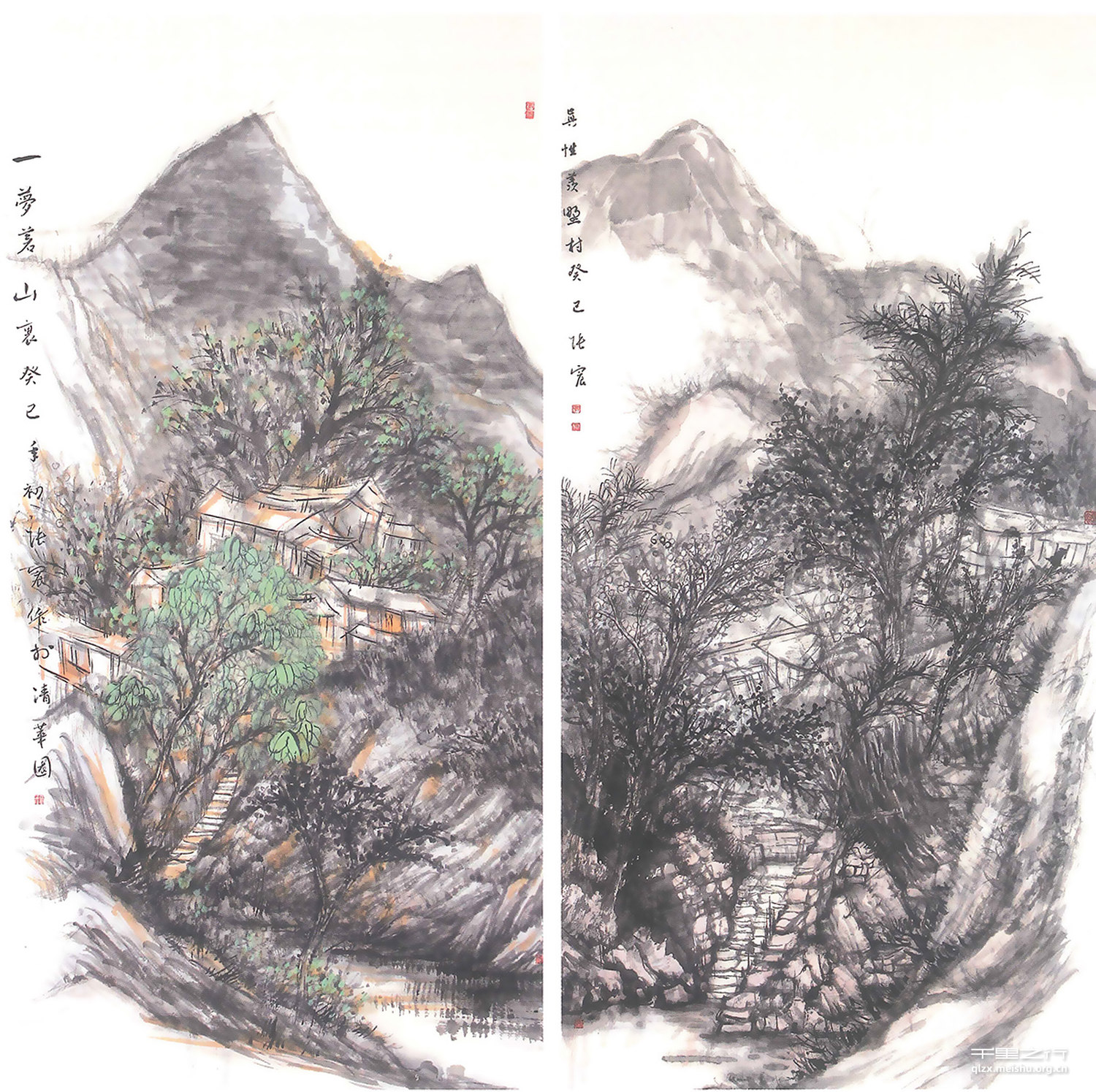 这件作品是在太行山写生之后回到工作室里整理完成的,前后大约用了一个月,主要在于石色的运用和山体结构的研究,我力图在画面中制造出强烈的运动感,找到自己区别于古人的构图方式,树石和山体都进行了简化和抽象的处理。