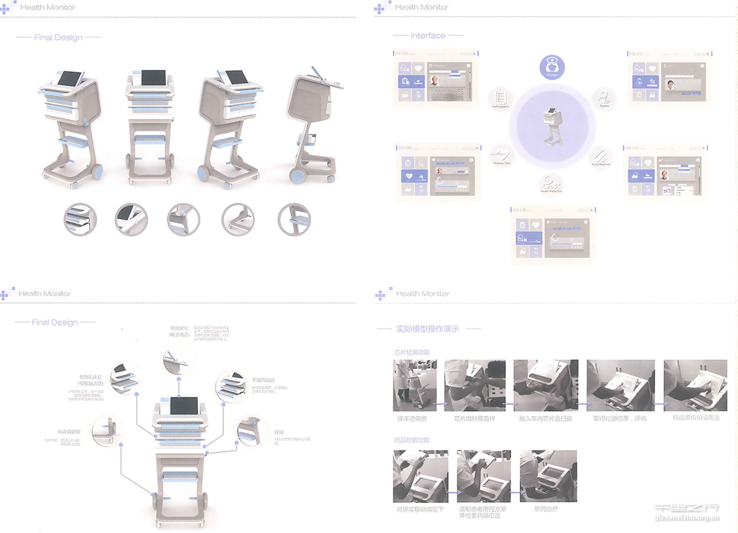 以生物芯片技术为核心的生命科学被视为影响未来人类健康生活方式的朝阳产业,但是从产品、服务创新角度对该产业进行深入的研究探索还鲜有研究者触及。该毕业设计从社会创新的角度对此进行了富有意义的设计探讨,为中国城乡语境中的健康医疗系统的完善提出了建设性的解决方案,为医患间的良性交互提供了新的体验和界面设计,达到了本科学生毕业设计研究应有的深度。