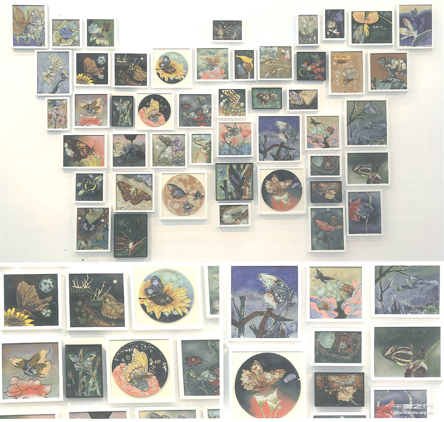 蝴蝶作为一种动物有着不同喻义。在瞿玉婷同学的创作中,蝴蝶则作为一种对已 逝母亲的寄托,以此表达对母亲、母爱的永恒追忆。正是陶瓷材料的这种特性,高度契合了作品的原意。陶瓷经过高温烧制而成,釉下彩看似随意而成实则千“炉”百炼费尽心思,似生活中的琐事细节,烧成之后则为永恒。