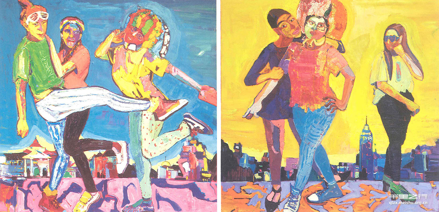擅长用色彩语言来表现当代都市青年的生活状态,画面色调明快,氛围轻松,节奏把 空得当,并形成了鲜明的绘画风格。