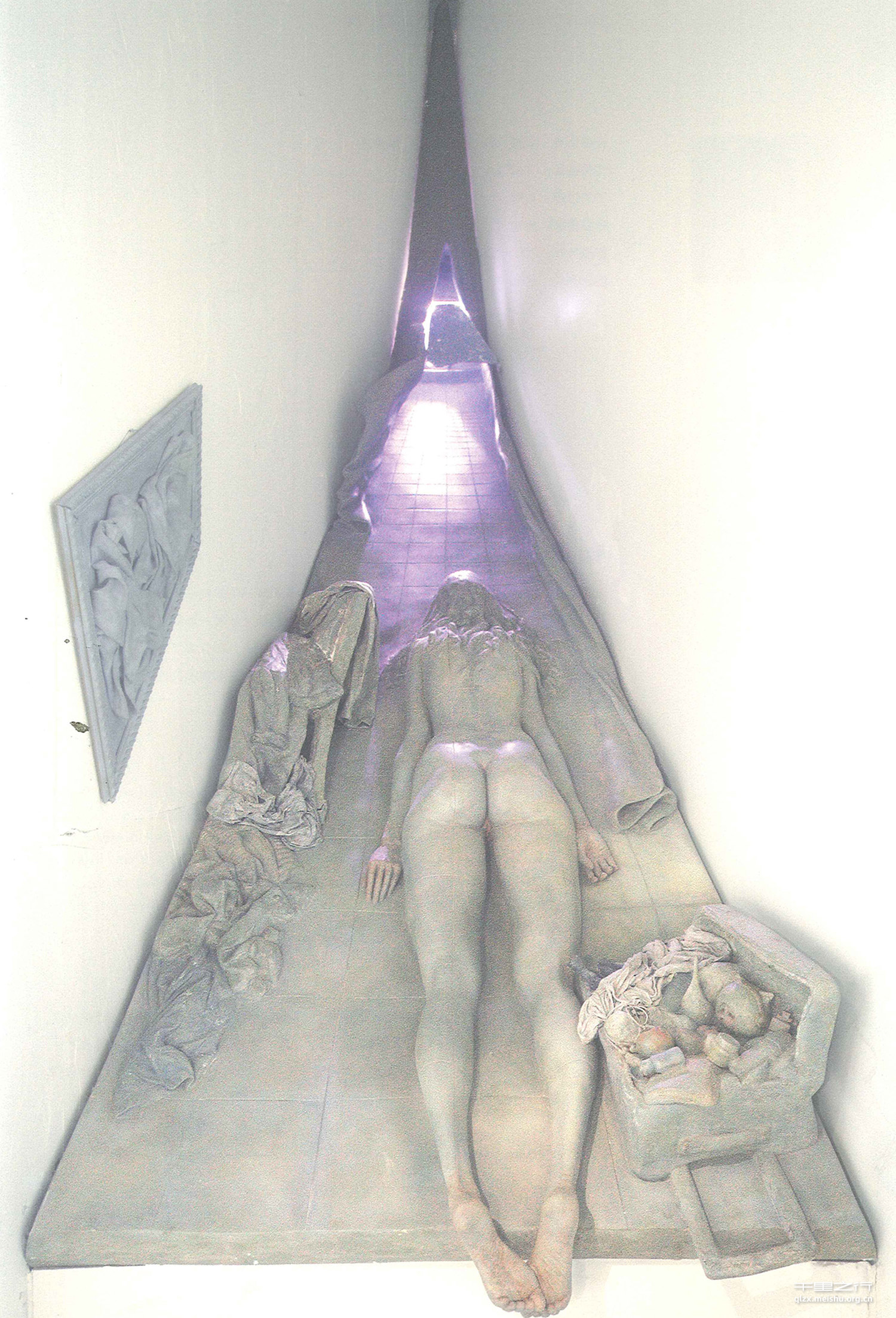 闫辉对哲学有着浓厚的兴趣,他的作品《相■感》通过增强透视感来强调渲染式场景的叙事 性表达,语言的阐述生动细腻,以改变观看的视角及空间的展示,予以达到准确地阐释作品的表达意图与观者心里的想象空间,使得传统具象雕塑有着耳目一新的观看体验|