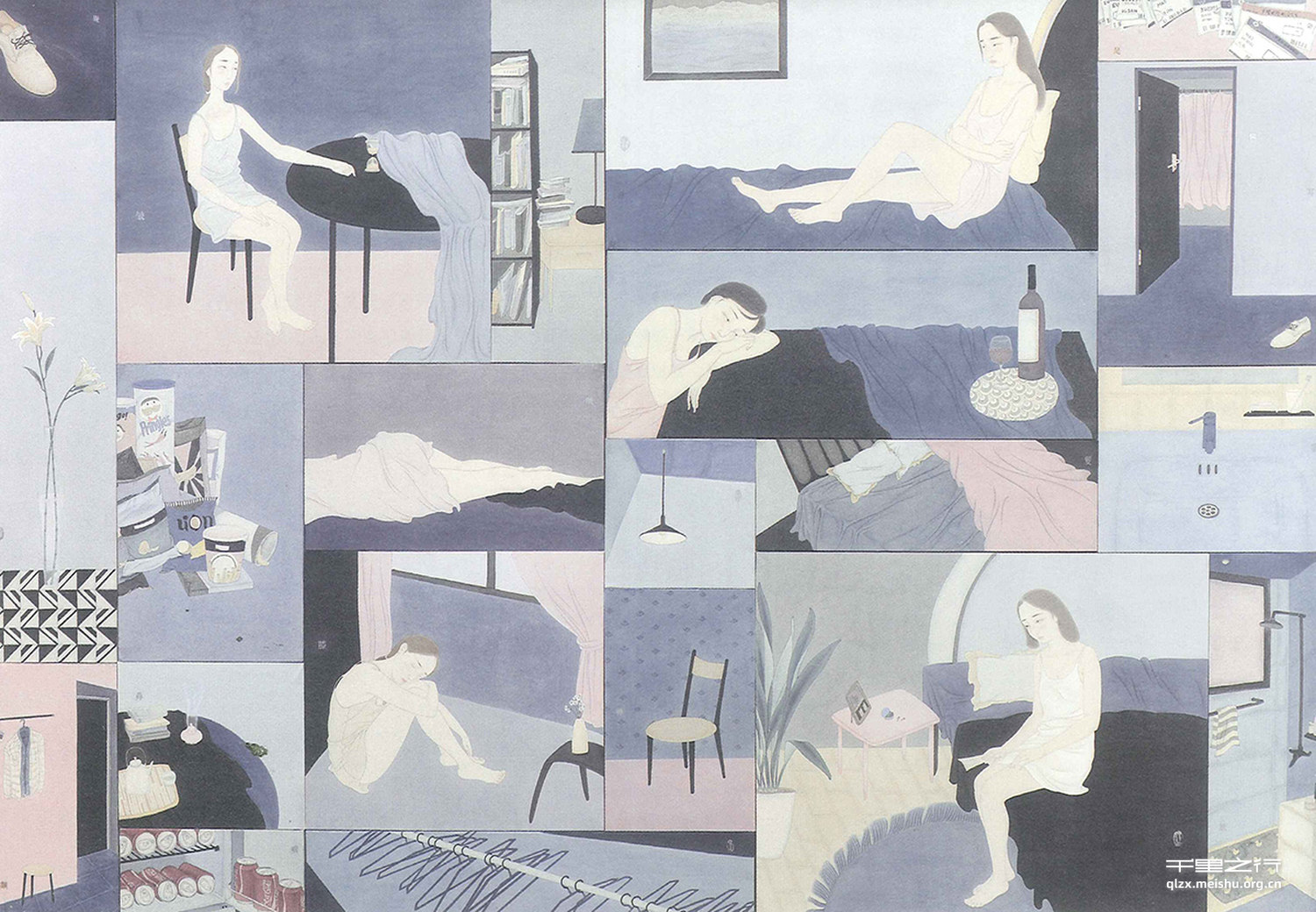 采用传统多宝格的构图方式,将生活的碎片聚合起来,构成一幅完整的个人生活画卷。