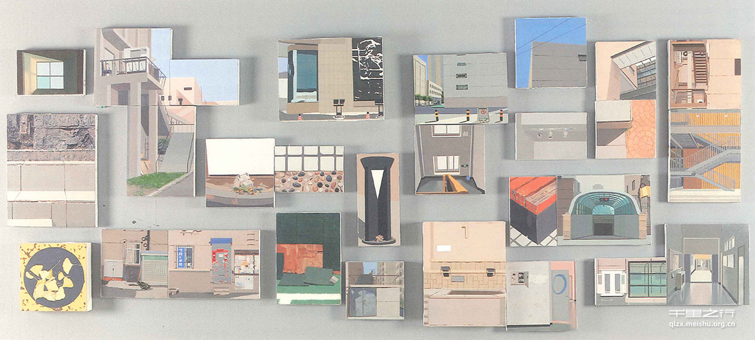 孙帝坤同学的这一组毕业创作表现的是他生活了四年的大学校园的各个角落,作品由两张较 大创作和一组小画组成。作品注重画面构成语言,对灰色调色彩并置关系有较深刻的体i。在他的作品中可以看出加入了非现实因素的物像,如飞机、木偶,增加了画面的表现语言。孙帝坤同学作品创作态度真诚,造型能力较强,对灰色调的把握准确,不失为一组优秀的毕业创作。