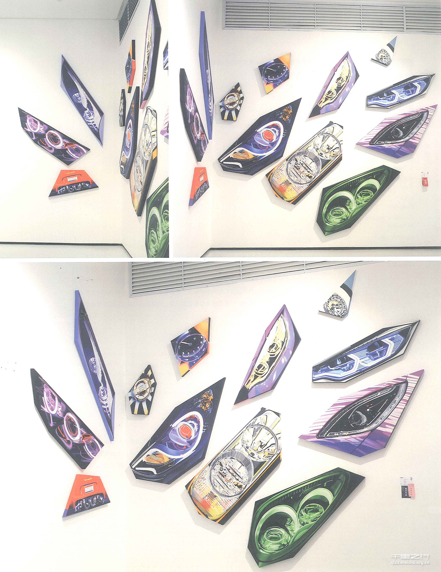 这组作品来源于小时候的车祸,汽车对我有着特别的意义。创作中提取车灯和车局部作为主 要元素,因为它是我理解车灵魂美的重要组成方式,车灯造型是描述车子个性的语言,具有一定的代表性。而车就是我的记忆载体,局部呈现就是我内化的个人世界缩影。