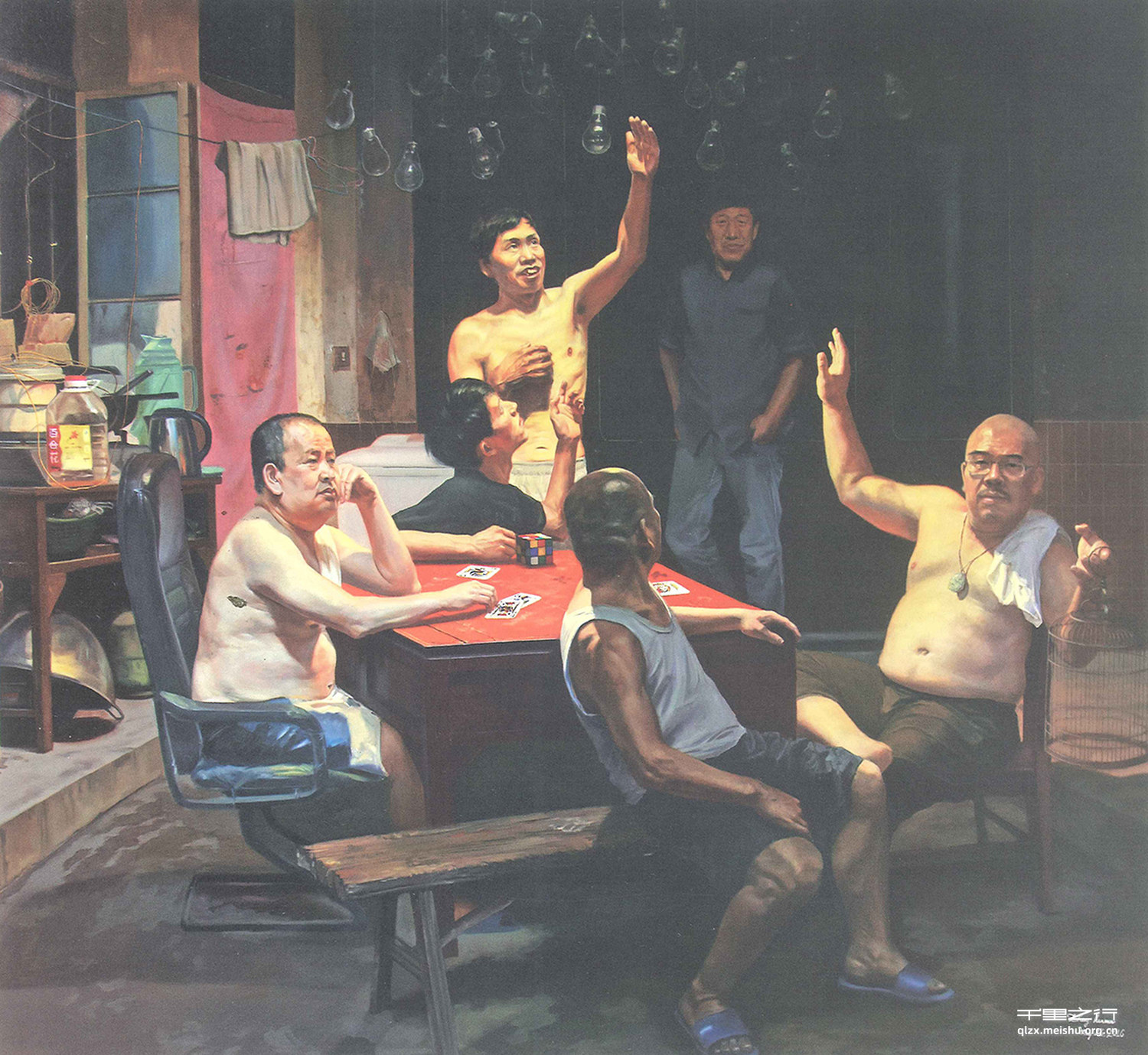 《无光之光》这幅创作来源于大时代背景下真切的生活,包含对城乡夹缝群体的人文关怀与 理性批判,而非一幅简单的多人物组合或矫揉造作之作,其中蕴含画背后的庞大信息与寓意恐怕并不能三言两语尽皆述尽,只能用《石头记》的开篇诗来表达我的情感:满纸荒唐言,一把辛酸泪。都云作者痴,谁解其中味。