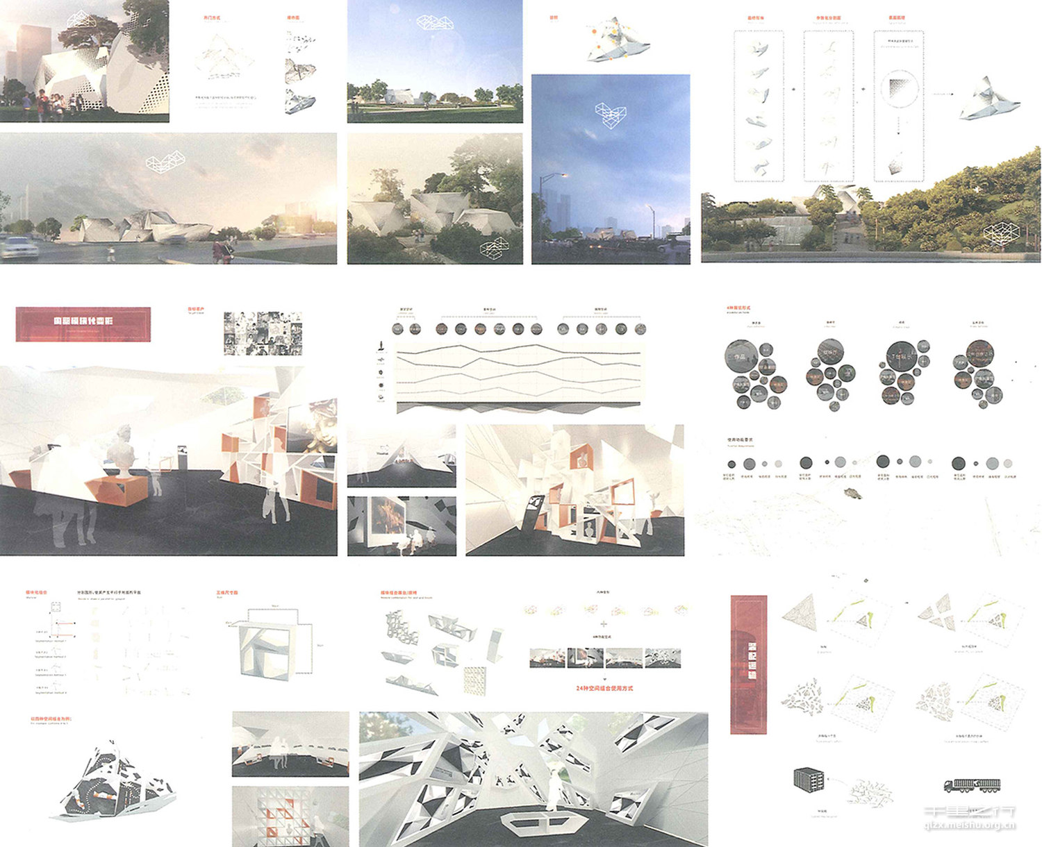 该作品创意新颖,体现设计者的创造能力。结合众创空间的概念与可持续发展结 合,提出众空间的概念,设计出可移动变形展览馆。从概念确立到数学几何变形问题探究,外部结构以及内部模块化设计,整个流程逻辑思维清晰,结构严谨,具有一定开创性。