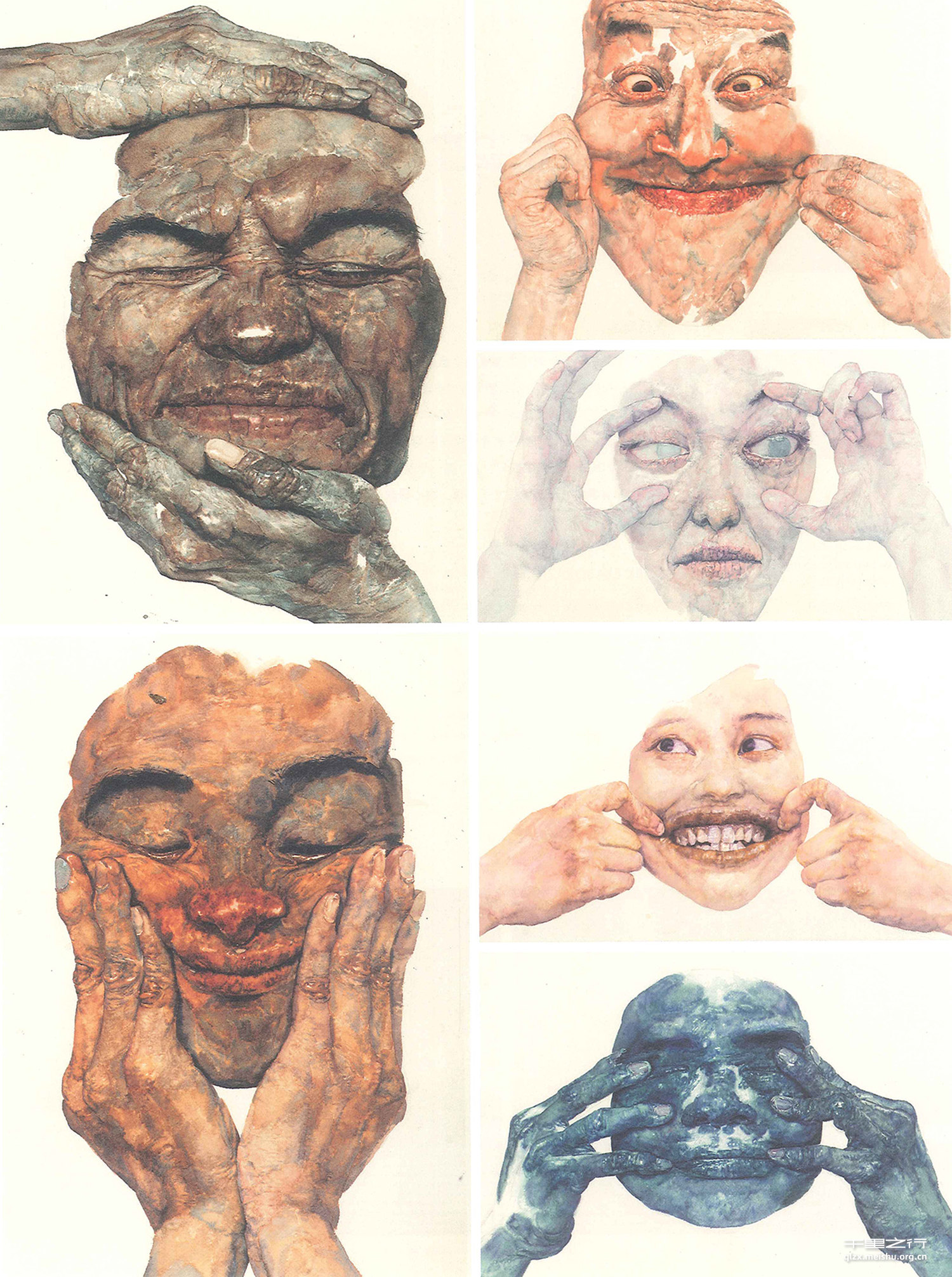毕业创作所画的《表情系列画》,主要通过对表情加之手部动作的描绘,表现生活中有趣的 人物面部表情,借助造型语言来感染观者从而引人深思。