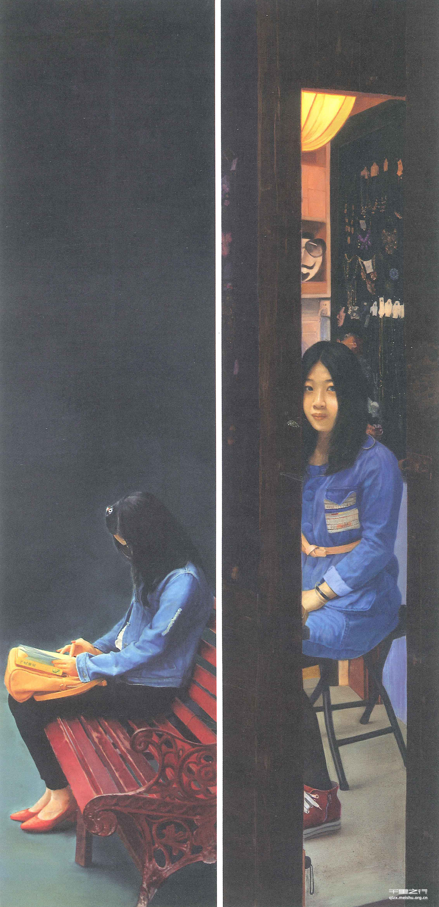 这两幅作品的取景来自于武汉昙华林的街景随拍。取名昙花一现”有“昙华一现”之意, 是想通过自己对现实主义油画写实的理解来表现青春的寄语,记录下转身即逝的美好场景。