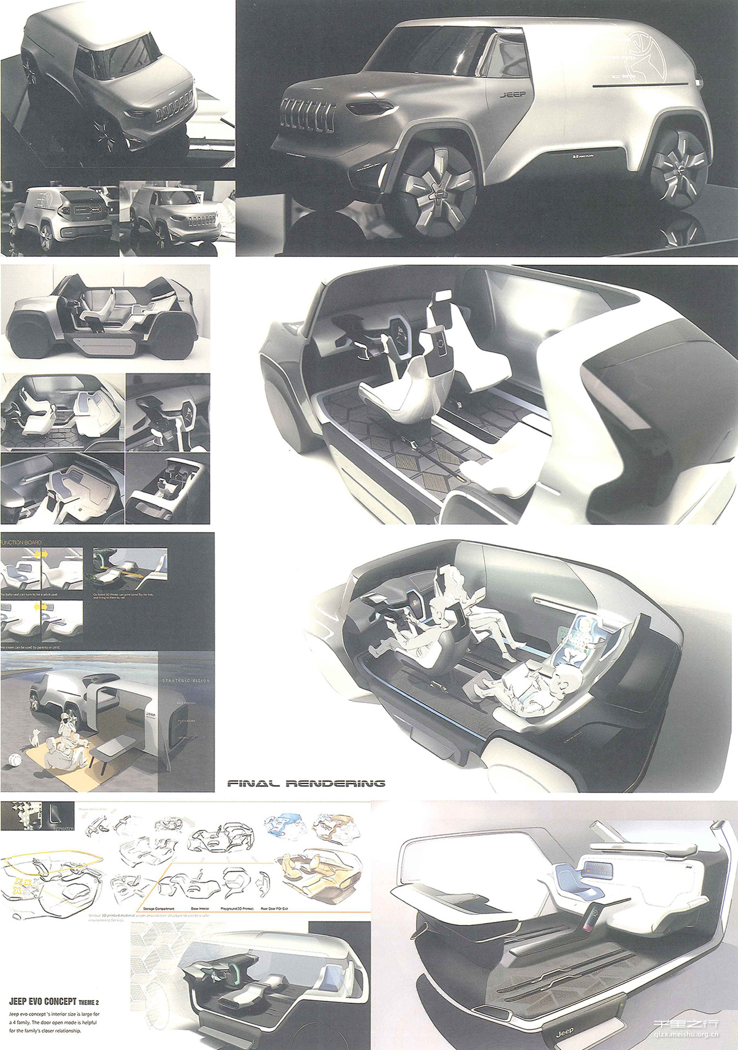 交通工具设计是一个理论与实践紧密结合的学科,入门需要大量的手绘训练,但这绝对只是 冰山一角,在跟进项目的过程中不断输入新的知识,不断输入他们建议,既要主观的创新,又要客观地去修正。总的来说JEEPEVO'是个具有感染力的作品。