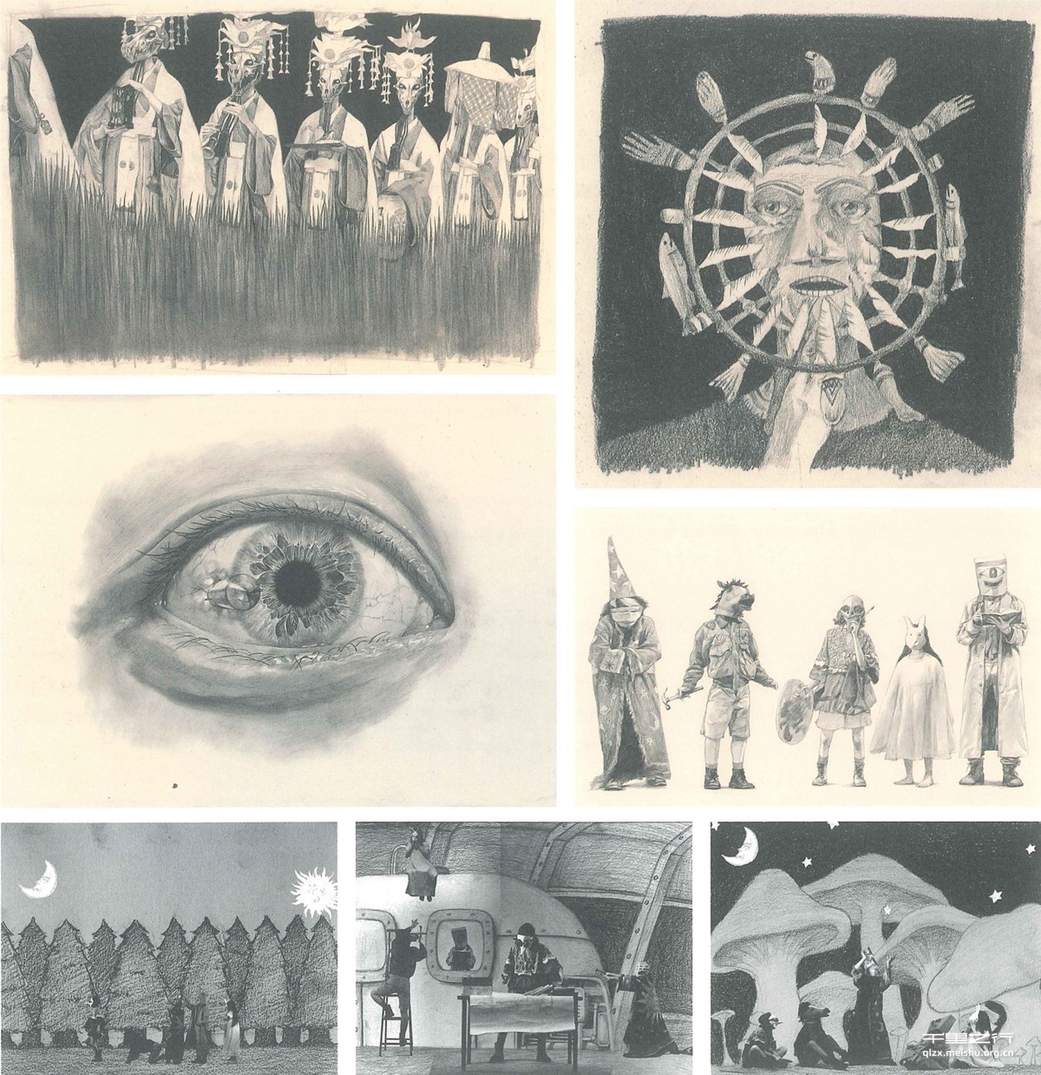 我以图文并行的创作手法创造一个新世界,演绎反乌托邦主题下的精神不灭与延续。人类移居深海之下建立集权下的国度,人人都戴上隔离的面具,造而平等。人的精神被关在自我搭建的牢笼里,精神思想好似一颗随时引爆的炸弹,传承心灵的纸质书籍化为海上浮沫、新兴国家禁止音乐,以药片式的垃圾娱乐消遣和抚慰诸众。此刻先行者点燃了火把,期待光亮爆炸黑夜。默片作为含在绘本内容里一个多维度表达的剧情补充。