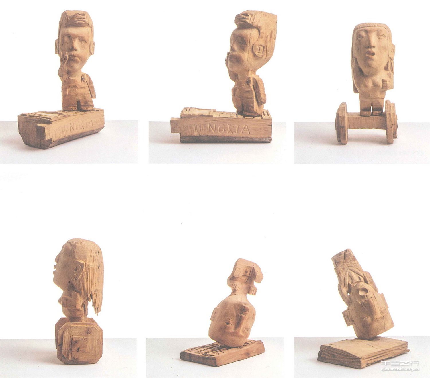作品以轻松诙谐造型将身边纠结、孤独生存状态化作开怀喜感,生动而有别有趣味。造型不乏对木彫造型个人化的赏试呈现。