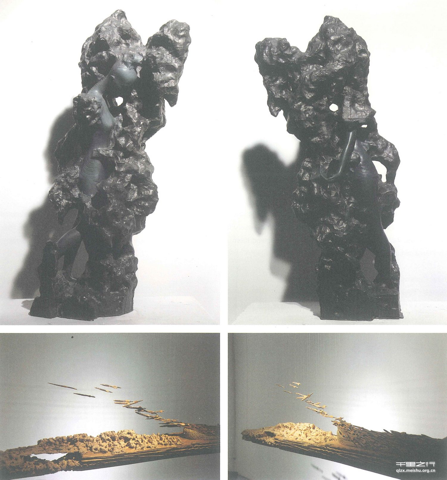 以具象写实的手法来创作,并带有抽象化的语言。借用了中国古典符号来传达信息,,来表达对当今中国人性格的看法。贯穿于整个作品之中的是如假山石般的肌理,我运用正形与负形结合的传统手法,将它处理得粗糙,在我看来它“瘦、漏、空”,呈现出经历岁月洗礼后的沧桑,幽静而凄美。我所表现的并非是审美意义上的石头,它承载着中国文化遗留下来的沉重与幽怨的一面,沧桑得布满创伤,深沉又显得空洞。我们每个人都是一个中国符号,重要的是寻求到自我身份的认知和文化身份的认同的平衡。人要自我解放,人要自我救赎,而不是毫无思想的活着。我们以什么样的姿态活在今天的社会,怎样做好一个中国身份的人,这是个令人深思的问题。