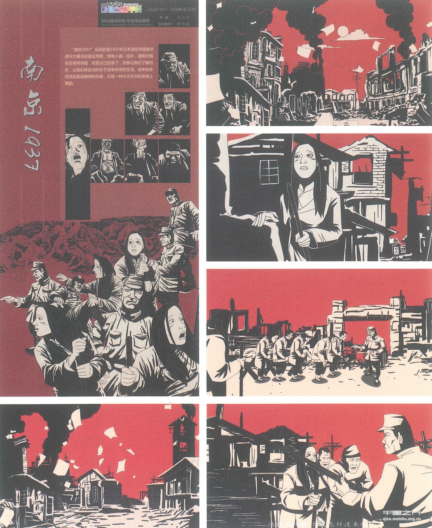 《南京 1937》创作反映的是着名南京大屠杀的历史故事,创作篇幅四分之三是回忆的 1937年的情景,用黑红灰三种颜色表现;四分之一是当代的南京,以蓝黑灰色表现。创作本着“大事不虚,小事不拘”的态度来实现,《南京 1937》保持了中国传统连环画的画风并结合了欧洲电影语言,将历史用现代人熟悉的表现方式讲述出来,将这段历史艺术化,将艺术大众化。