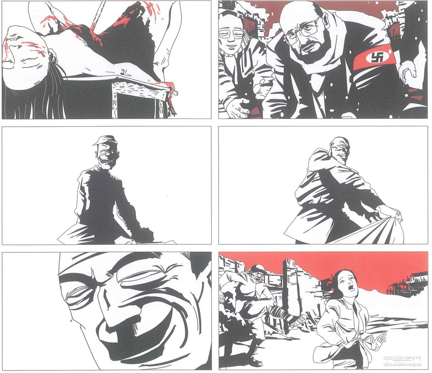 《南京 1937》创作反映的是着名南京大屠杀的历史故事,创作篇幅四分之三是回忆的 1937年的情景,用黑红灰三种颜色表现;四分之一是当代的南京,以蓝黑灰色表现。创作本着“大事不虚,小事不拘”的态度来实现,《南京 1937》保持了中国传统连环画的画风并结合了欧洲电影语言,将历史用现代人熟悉的表现方式讲述出来,将这段历史艺术化,将艺术大众化。