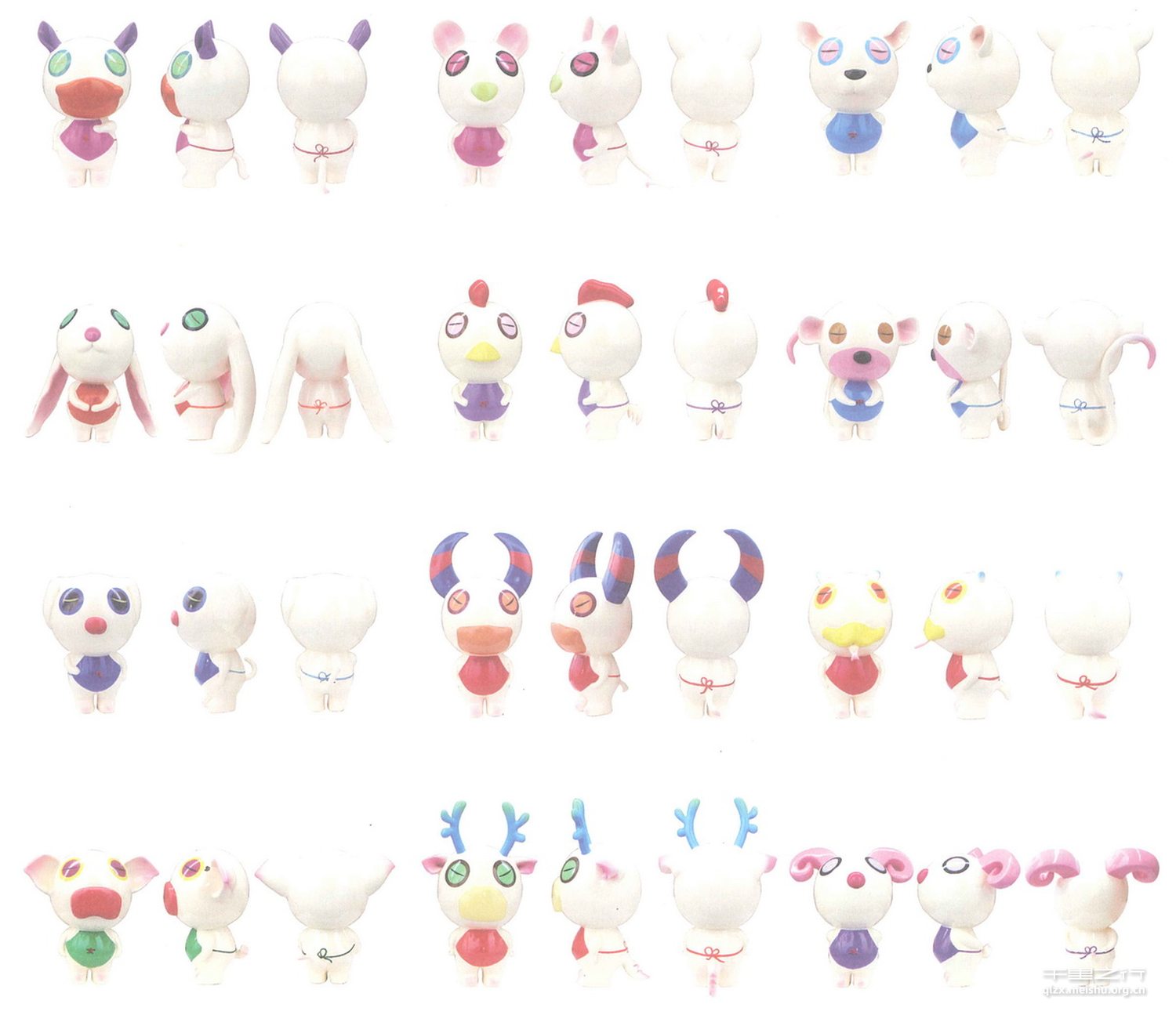 传统文化符号的当代转化是个时代课题。十二生肖是贯穿中国人文化记忆的永恒话题,杨桃同学的创作在平台玩具的模式中合理的运用了传统民间玩具的色彩风格同时很好的兼顾了角色的形象特点,较为成功的塑造出了一组符合现代人审美观念和消费习惯的新 "十二生肖 "系列玩具。总之,杨桃同学的创作敢于直面所学专业的时代挑战,虽不成熟,但值得称道!