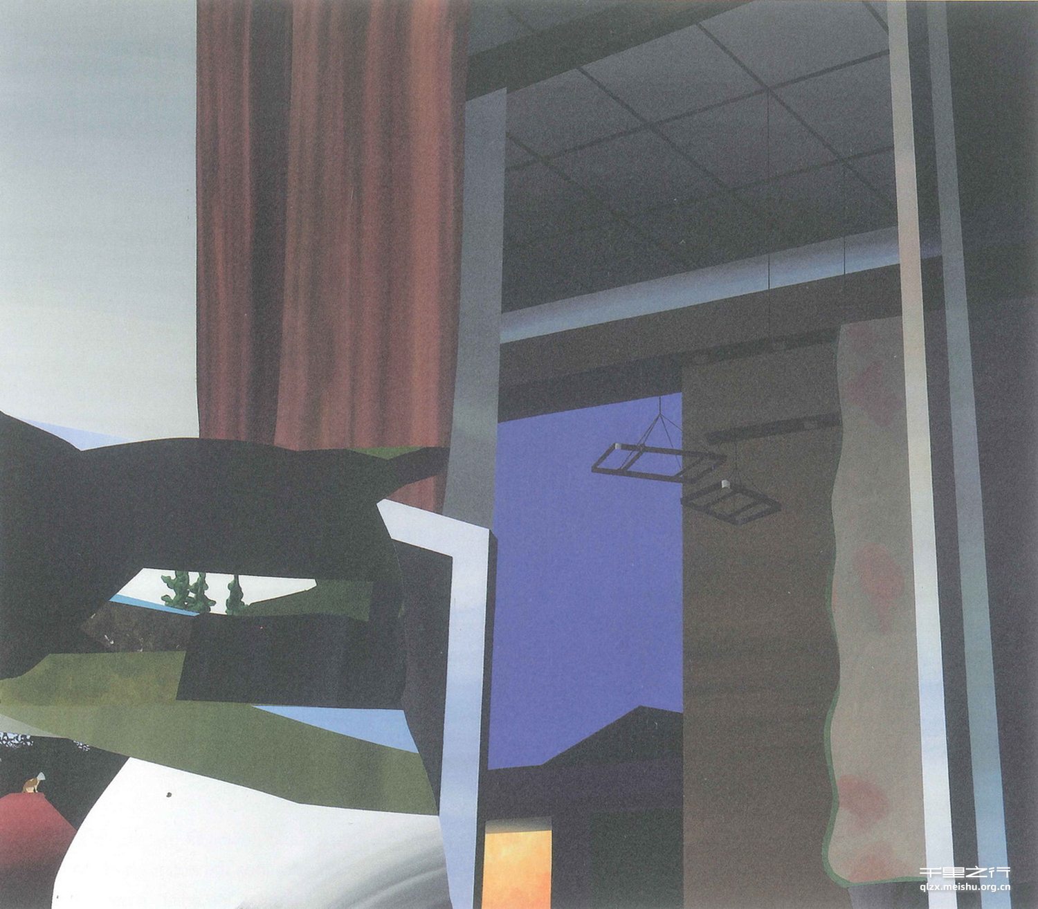 孟凡瑾的作品逻辑思路并不是很清晰,但画面所表达的语言却很突出。语言突出主要体现在对形体的概括上,他在画面里忽略掉了事物造型的准确性,处理成概括的、机械的、富有几何形的形象,表现出一种厚重沉稳的体积感,寻求事物关系之间的独立性和真实性。