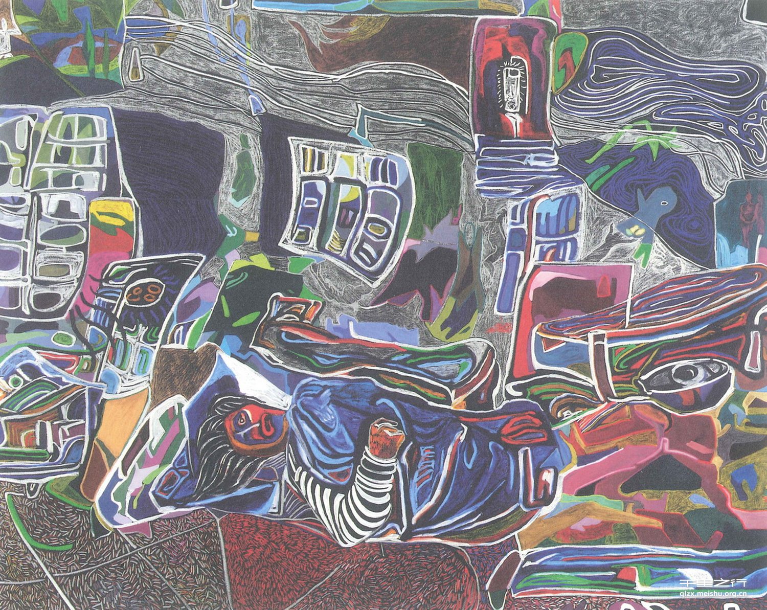 颜洁琼作品表现了线条的纠缠,色彩的碰撞,旋律的顿挫,结构的交叠。画面利用丰富的线条表现出一种颠覆现实的方法,它对线与色彩结合做了重新定义。在她画面里的线条可以形成任何可以想象到的东西,看得出作者本人对绘画本身倾注的热情和努力。