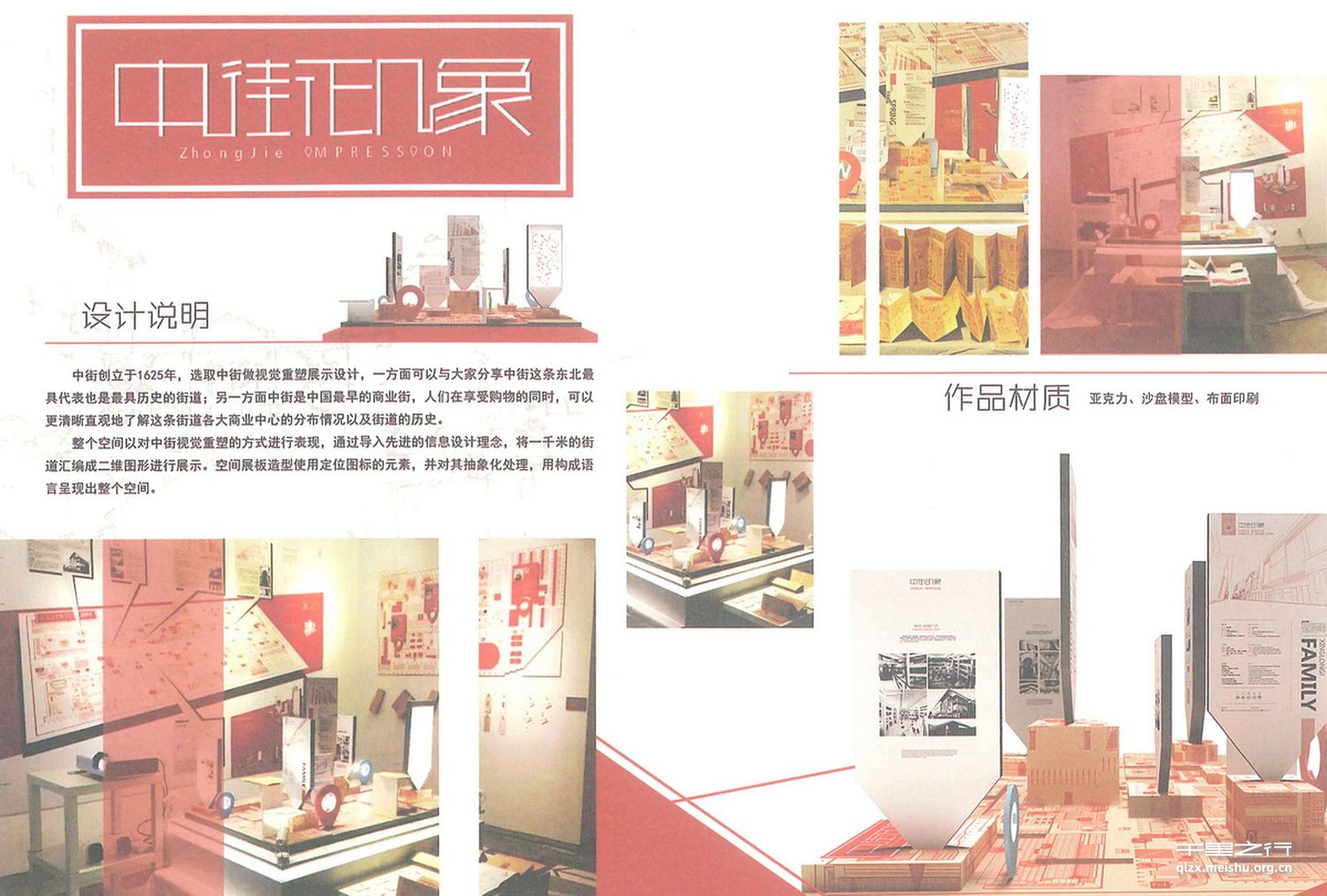 《中街印象》作品的设计者花费大量的时间与精力走访、调研、整理、研究“中街”的多维信息与历史脉络。以趣味化的符号语言,明快的色彩,简洁的造型重塑中街的视觉形象,以当代的视角解读中街历史与未来的碰撞。设计的重点在于对繁杂信息的整合与梳理,并以二维、三维及多媒体视听等手段综合表现,将中街全方位的呈现给观众。该作品具有较强的社会意义与学术价值。