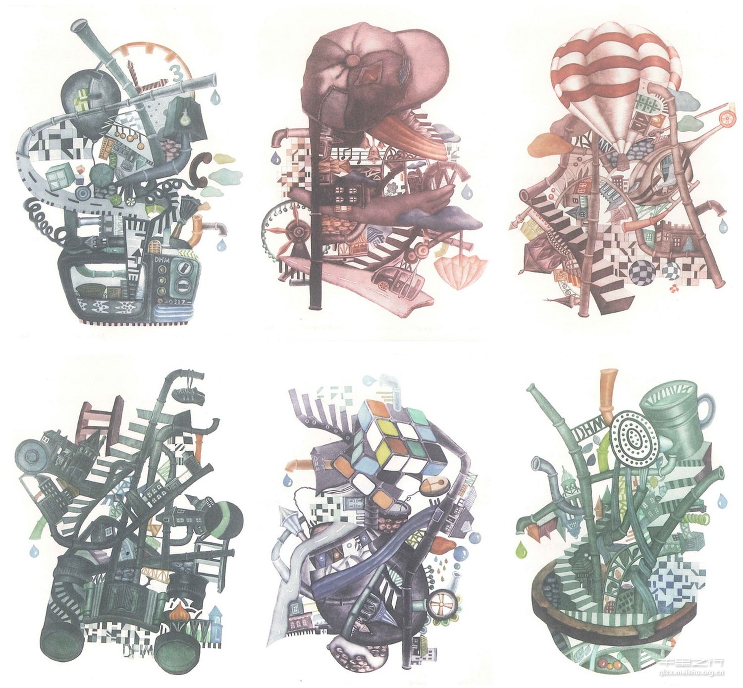 我的创作作品其实是我自己理性思维的一种展现,不同的画面表现了我不同创作时期的心境与感想。这一系列的每幅作品在统一之中还存在着相对的独立性,其中没有黑色的填充,只有彩色的表达,诠释了我本身厌弃黑暗,渴望光明的绚烂多彩,我出于理性的思考将一些我想象出来却又真实存在的事物联系交织在一起,以一种富于趣味性的画面构成与色彩组合表达了我自己保留的那点幼稚却感性的小情调。