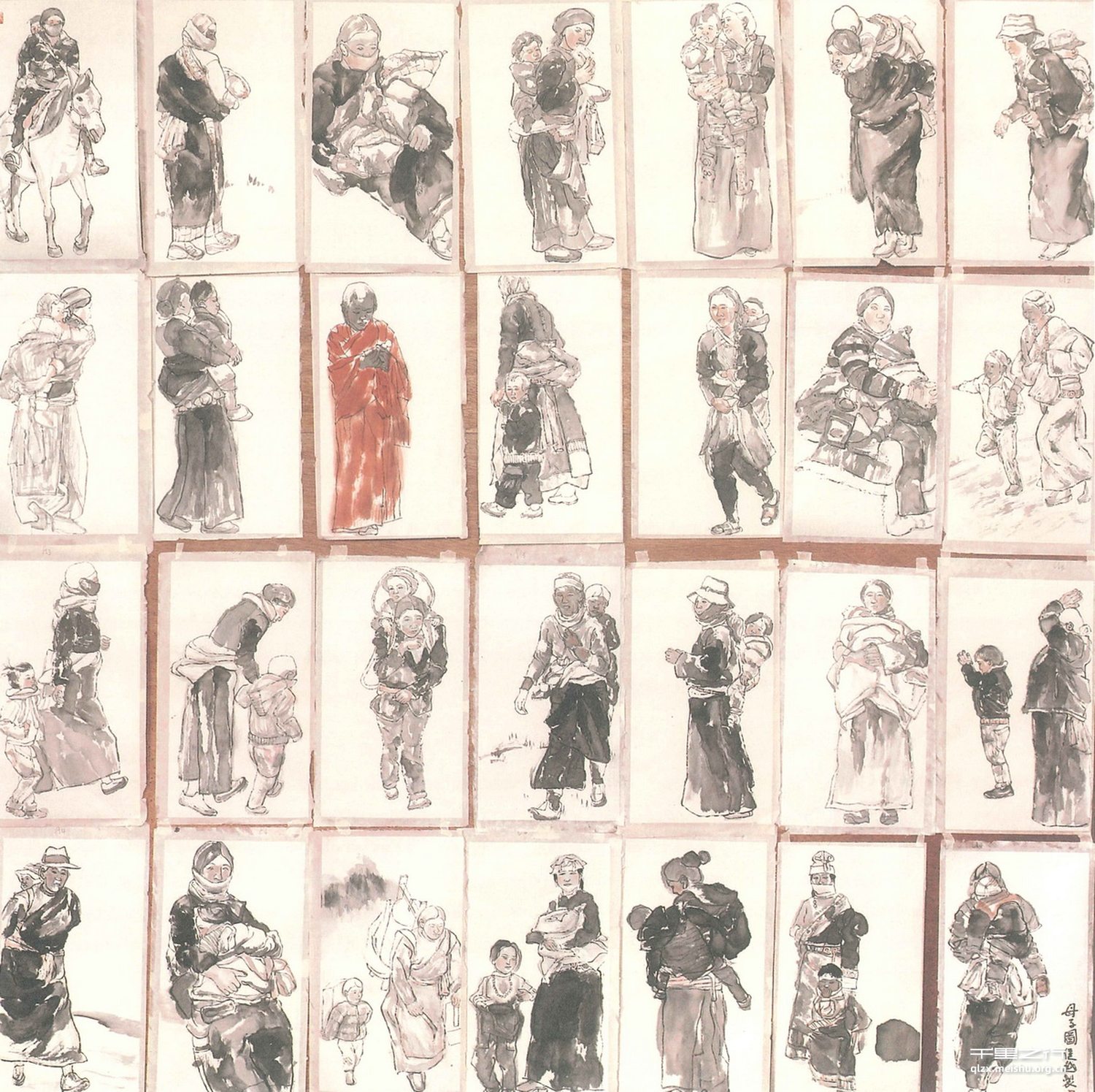 去甘南青海藏区的考察和多年对亲情的体验,是整幅画的资料基础和情感基础。在恶劣的环境中,交杂着宗教情感的沉甸甸的母爱给了我深刻的印象,所以想要表达出来,这种母子亲情是最简单、最原生态的感情,母亲背着孩子、母亲抱着孩子、母亲牵着孩子,生活中最简单的动作却有着情感间浓浓的依恋。